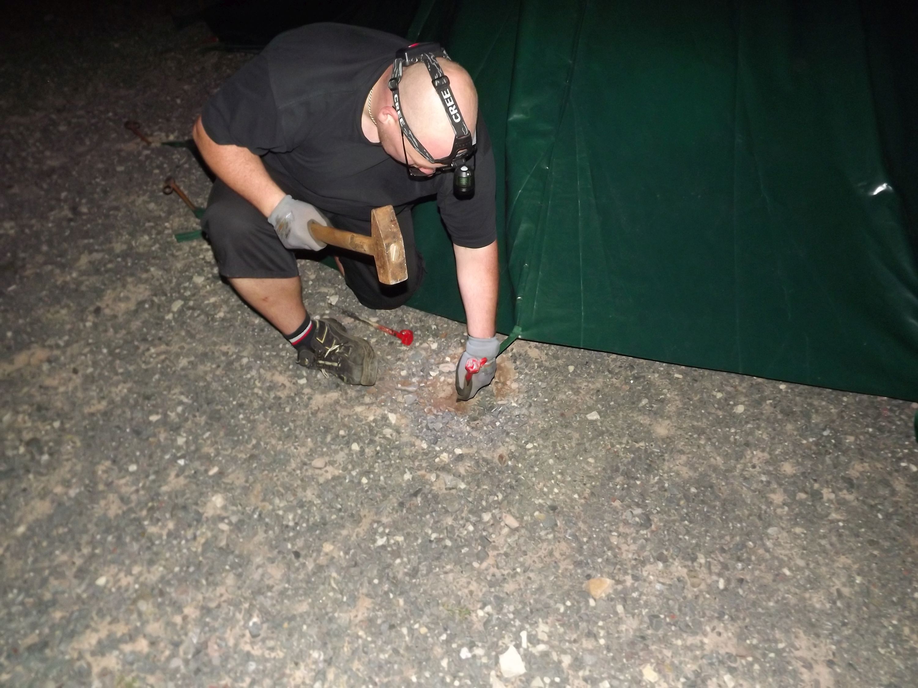 Das sieht man auch an den Häringen auf dem Bild, von denen er ca. 16 Stück in den Boden rammte.
