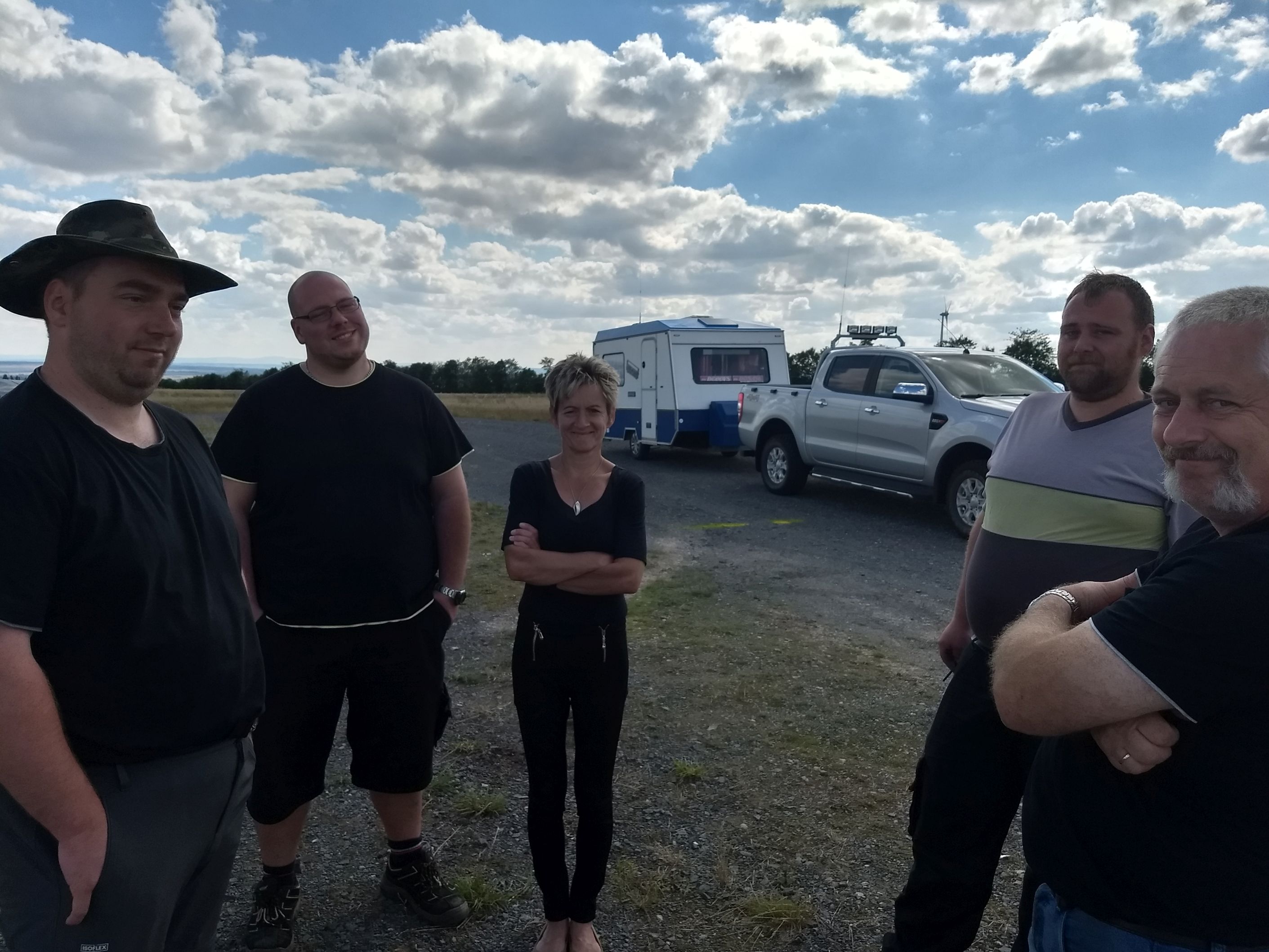 V.l.n.r: DL5ASG, DO4VEB, SWL Kerstin, DO5ASG und DL5ZK blicken leicht melanchonisch aber zu Frieden, dass der Abbau