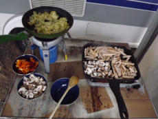 Geschnibbelt, gehackt, geschält, paniert, gerührt, gebraten, gekocht und endlose KW`s an Brenner gestartet um für das leibliche Wohl zu sorgen …..