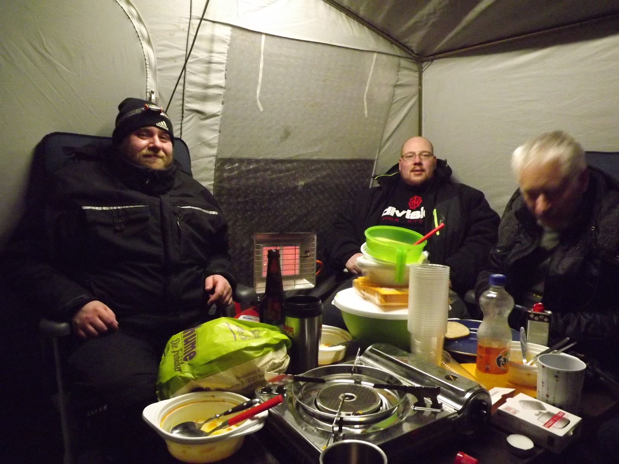 DO5ASG, DO4VEB und DL5ZK. Es war kuschlig warm im Zelt, zuweilen sogar