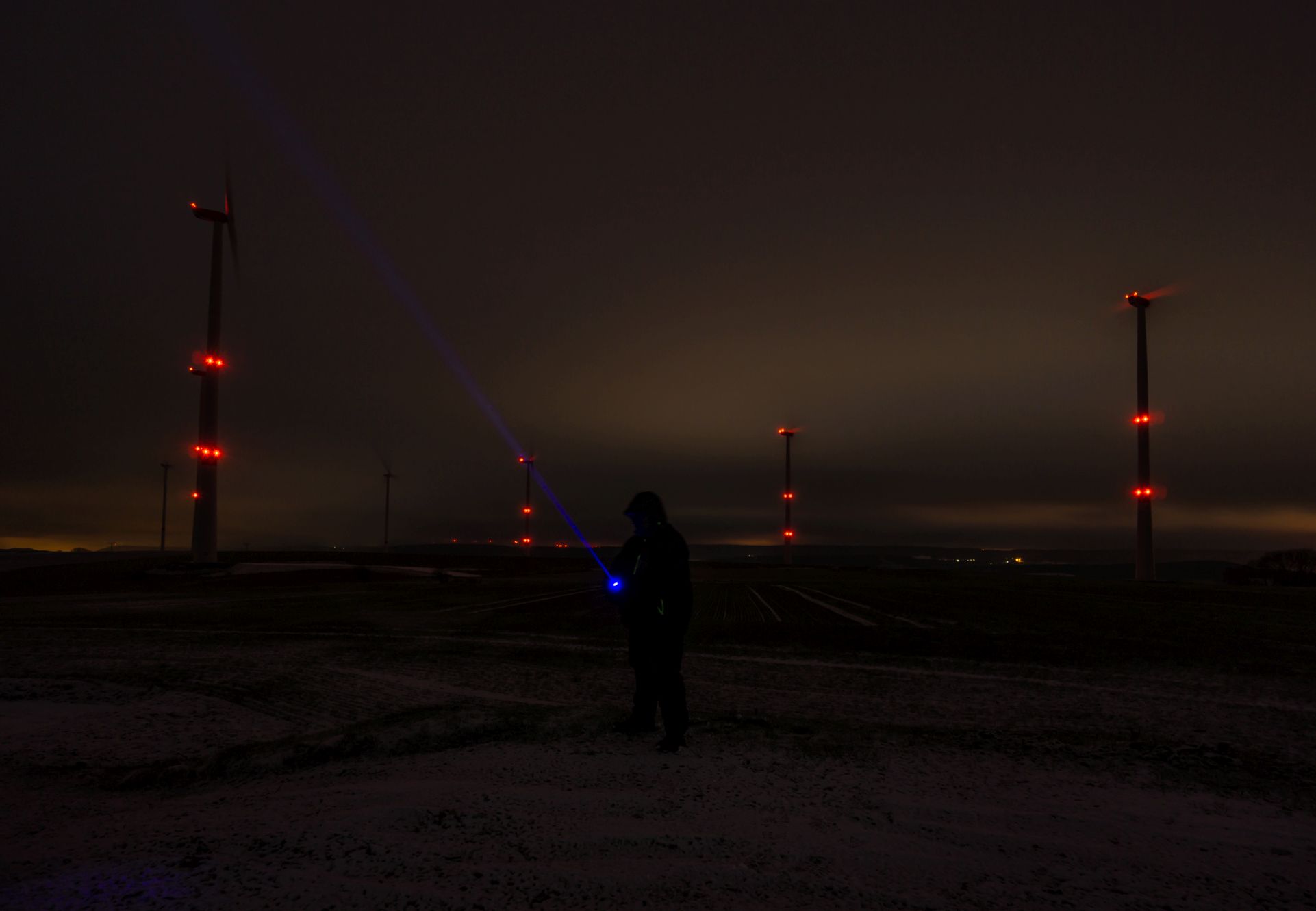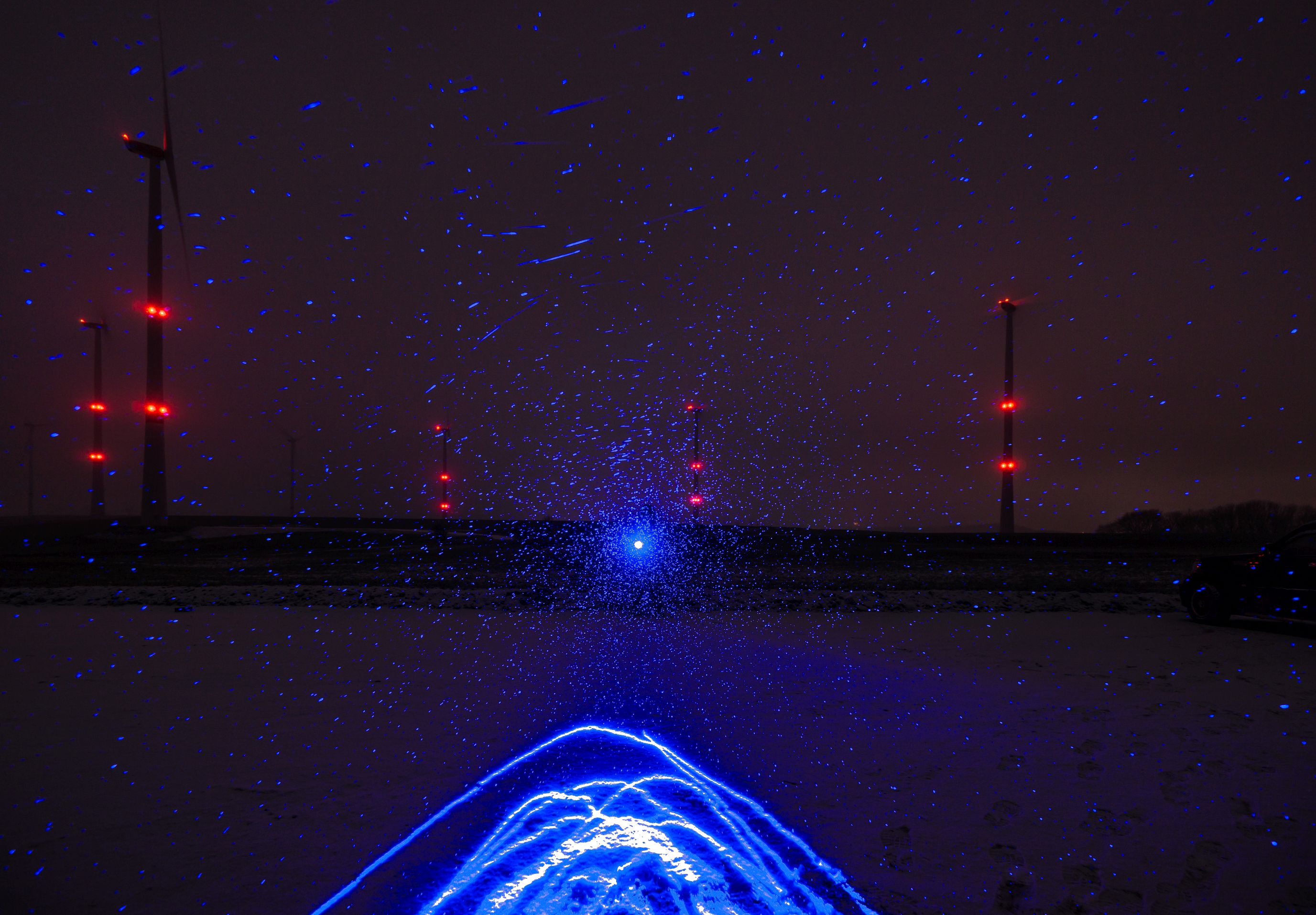 selbstgebauten blauen Laser, der an dem Abend noch einige Male für