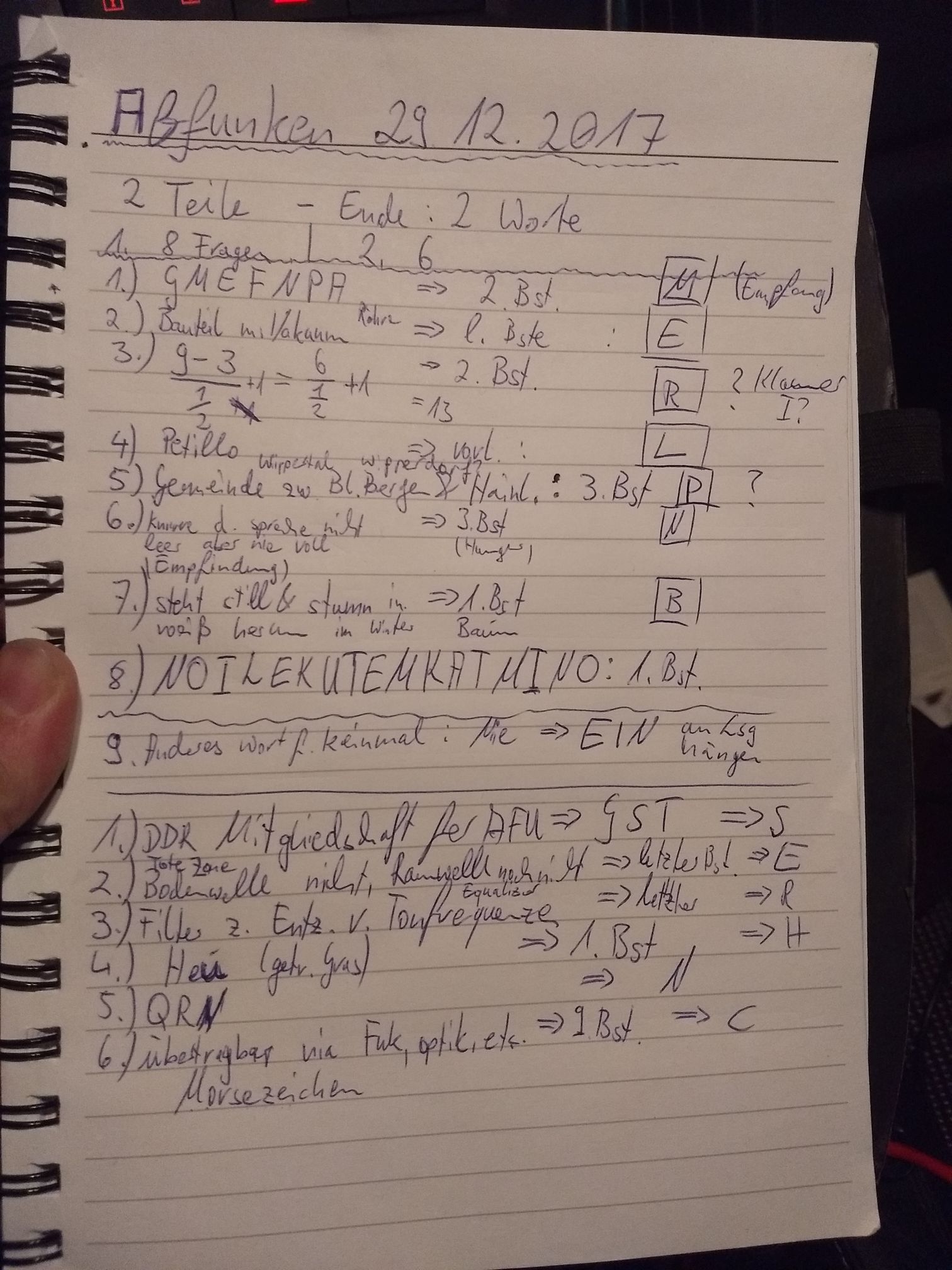 schrieb die Fragen und Antworten auf einen Zettel. Er wurde nicht aus