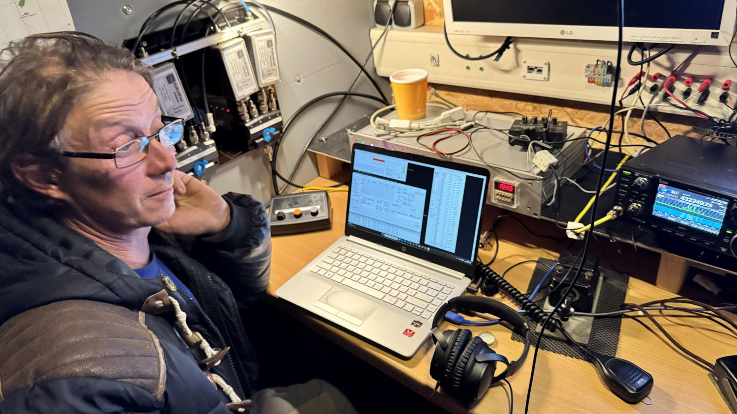 Gefunkt wurde mit zwei IC 9700. Einer für 70cman unseren Quadantennen mit Vorverstärkerohne PA und der zweite TRX für 23cm an einerYagi ohne PA.Auch dieses mal wurde nur aus dem Akkugefunkt!