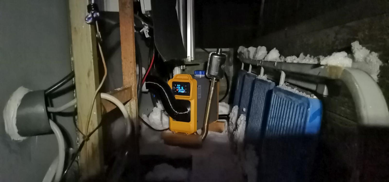 ALU Mast. Stromversorgung aus 200Ah Akku.