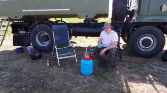 Rolf, DO1SY, war mit seinem Funkhängervor Ort und beschloss seine Bleiakku`sdurch einen LiFePo4 zu ersetzen.