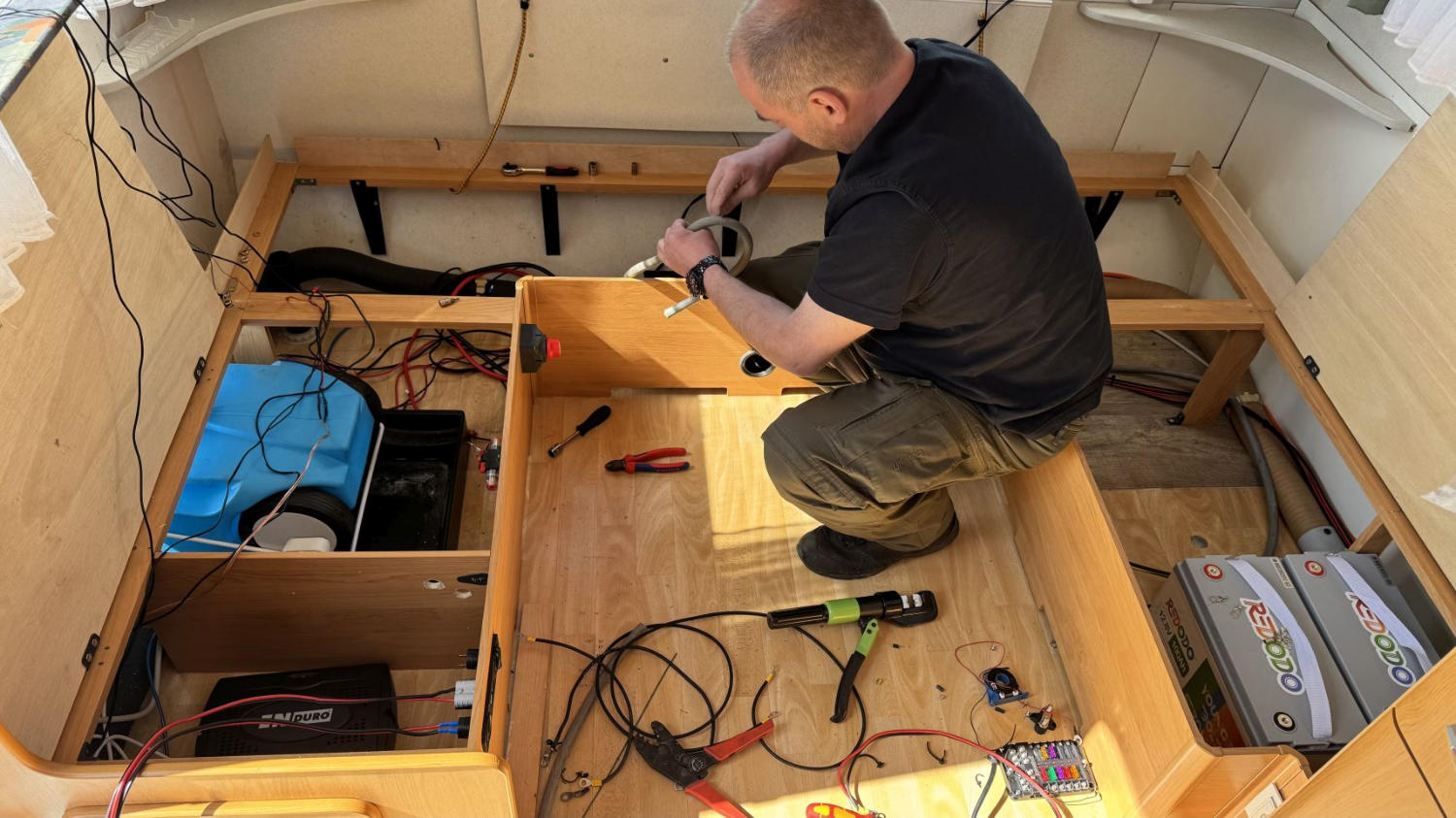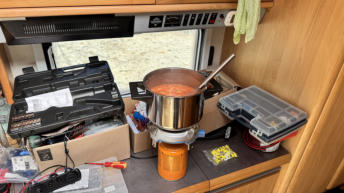 Auch wurde das 12V Stromsetup imWohnwagen von DO5SA auf Vordermann gebracht.