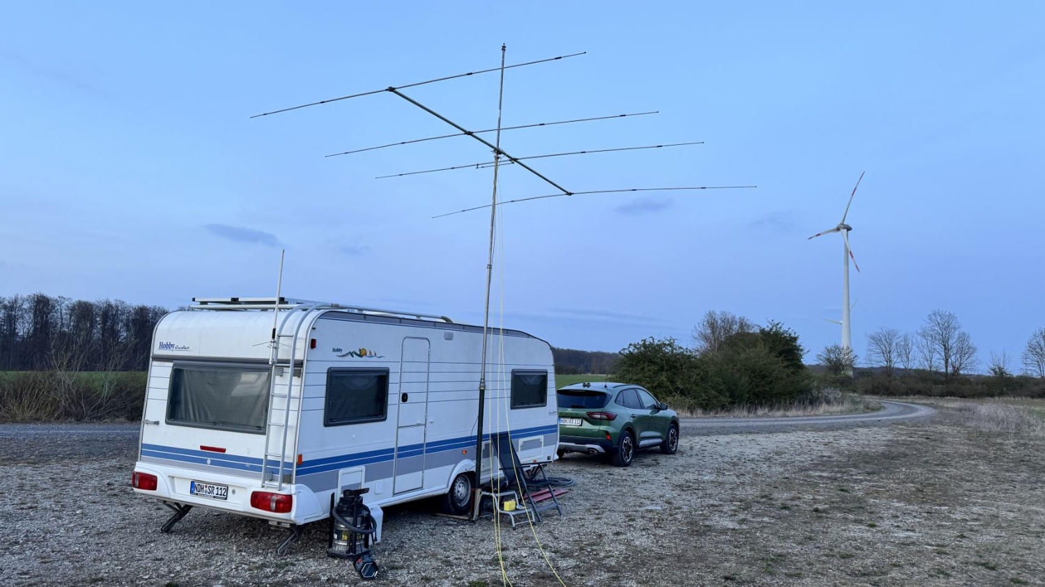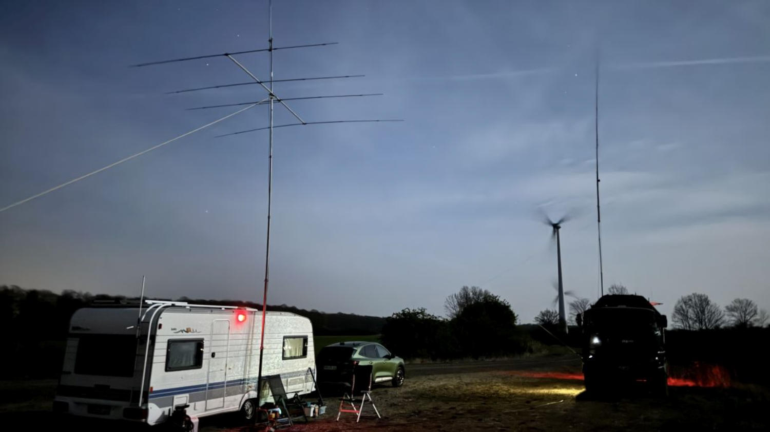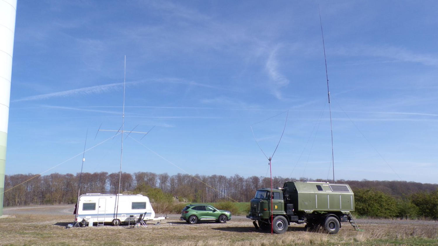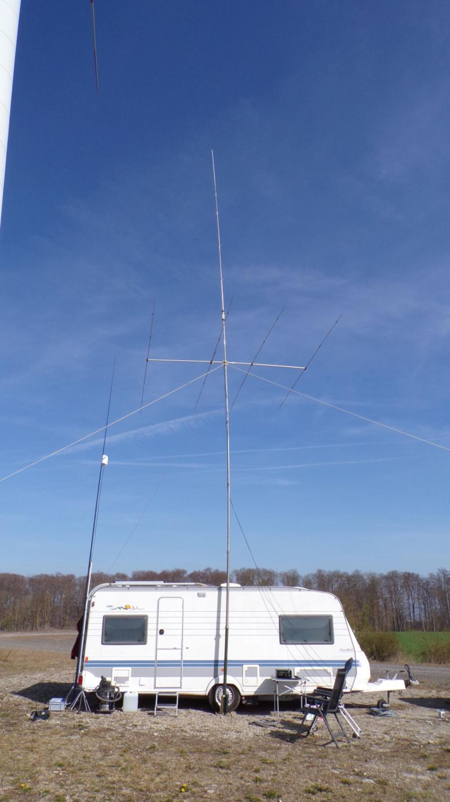 Für den CB Funk kamen überwiegendeine Halbwelle und eine ⅝ Gain Master zumEinsatz.Für Testzwecke wurden auf KW eine Langdraht2 x Delta11 (20-6m) und eine 4el. Yagi (10m)aufgebaut. Alle Antennen haben gut gespielt,DX nach Argentinien mit der Delta 11 und50W Leistung auf 10m…. kein Problem.