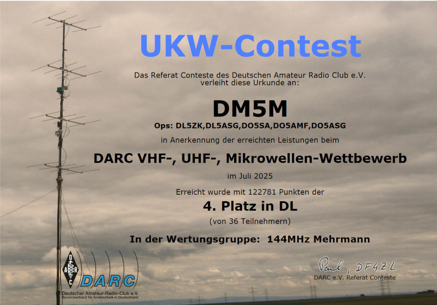 Am 04. - 06.07.25 bezogen wir unseren Contest-standort im Windpark Immenrode.Mit von der Party waren DO5ASG, DO5SADL5ASG & DL5ZK. Da wir zum Teil nur 3 Operatorwaren entschlossen wir uns nur 2mzu bedienen.