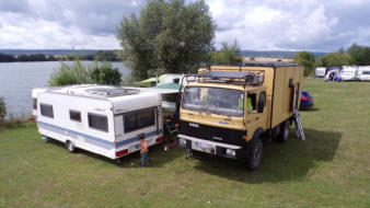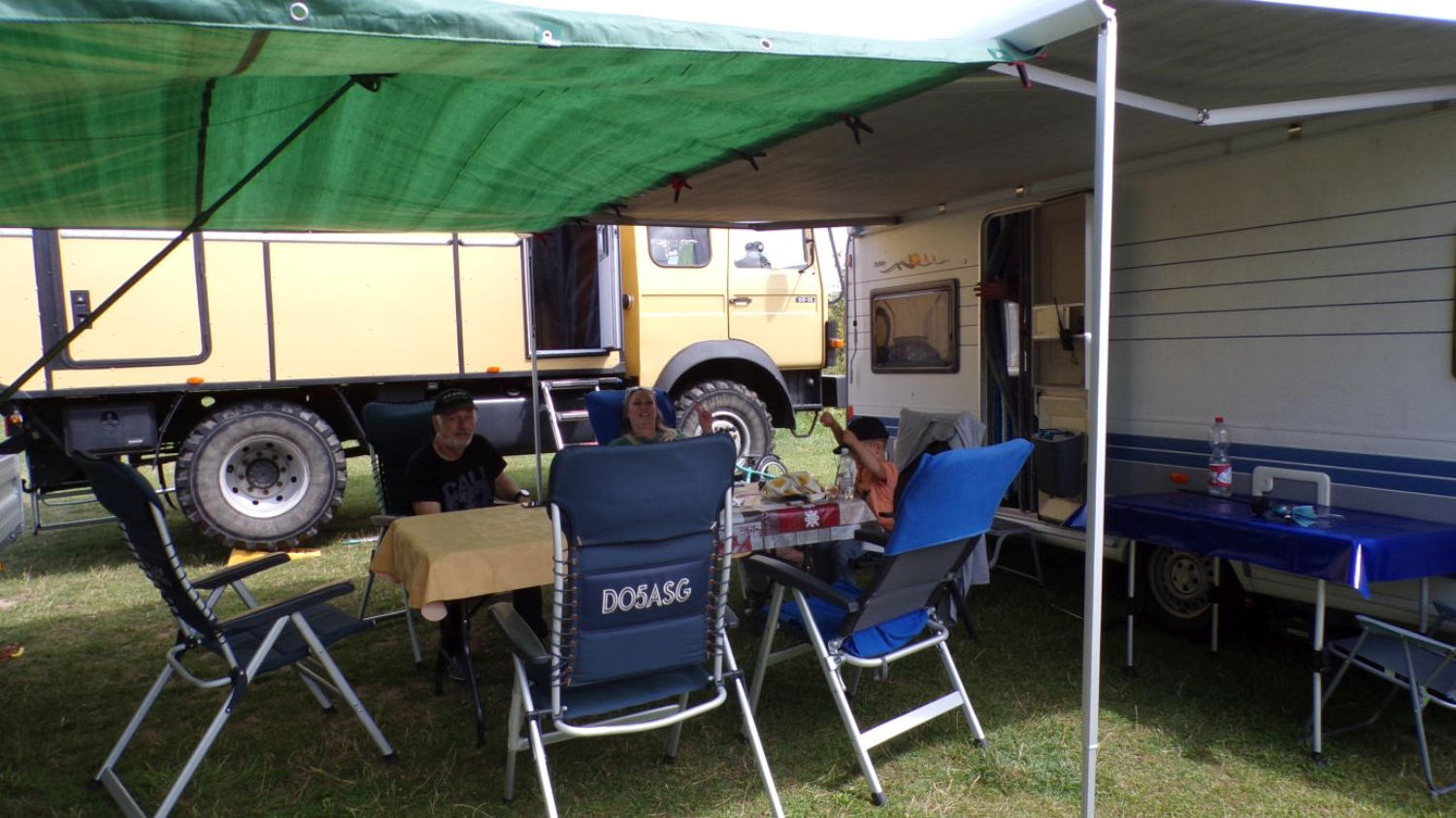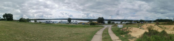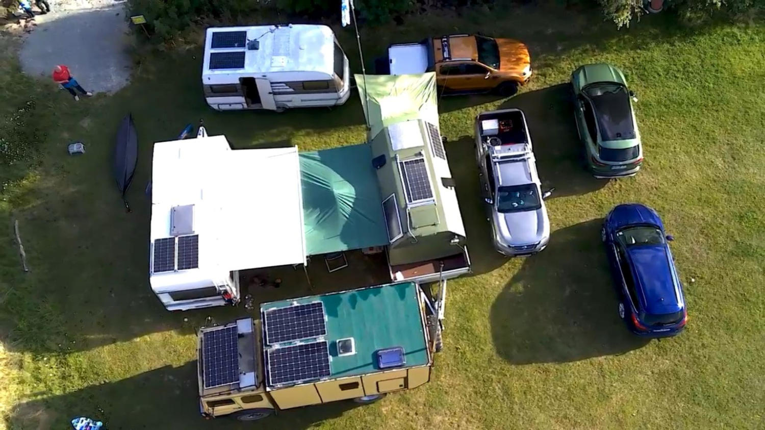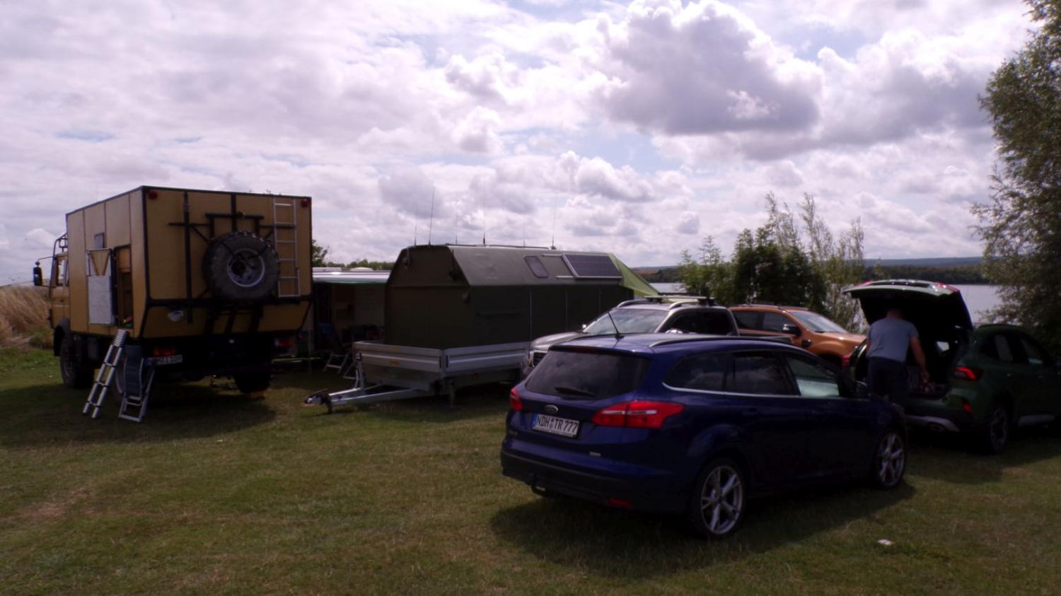 Mit 4 Wohneinheiten, als Wagenburg aufgestelltmit Zugfahrzeugen, benötigten wir lediglichzwei Stellplätze.