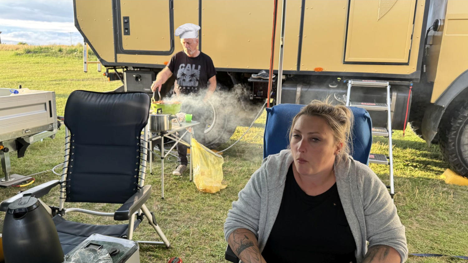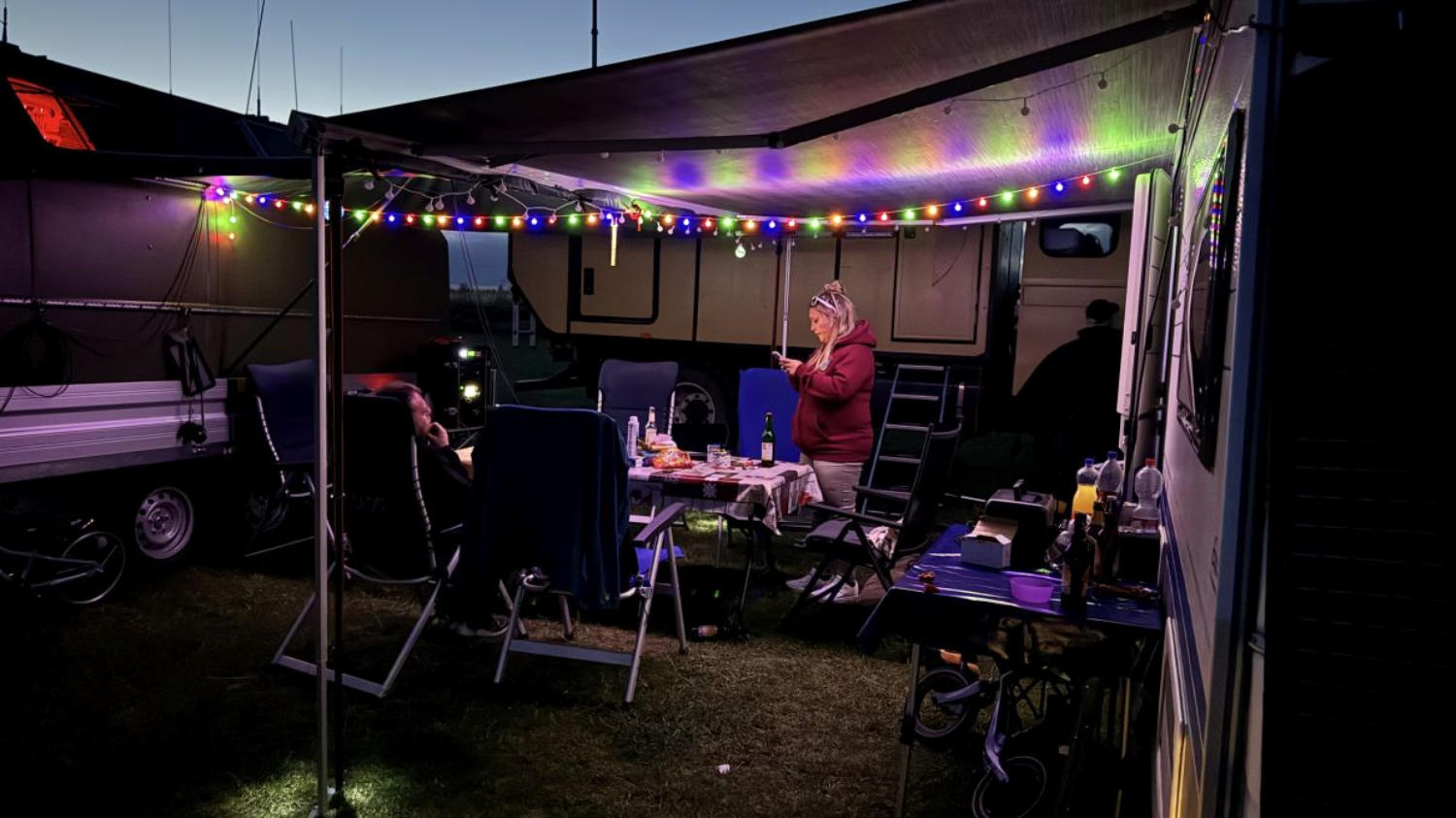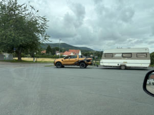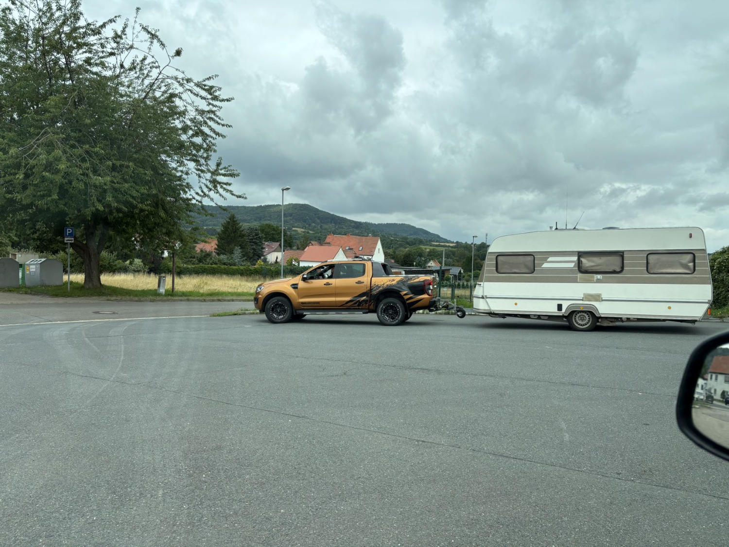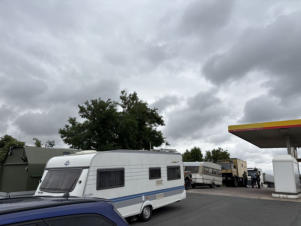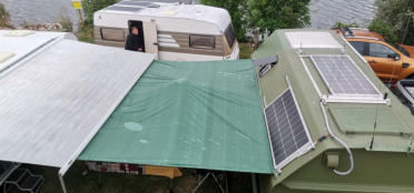 Mit 4 Wohneinheiten, als Wagenburg aufgestelltmit Zugfahrzeugen, benötigten wir lediglichzwei Stellplätze.