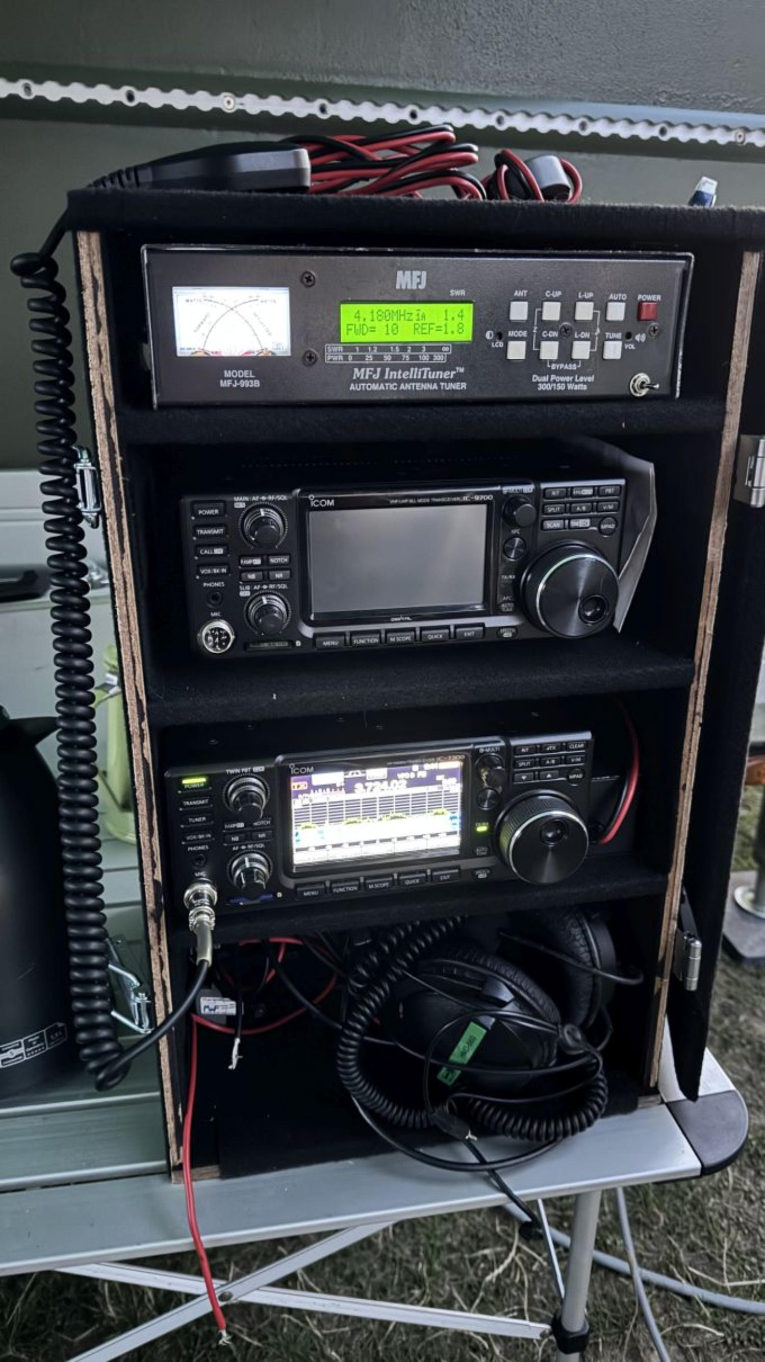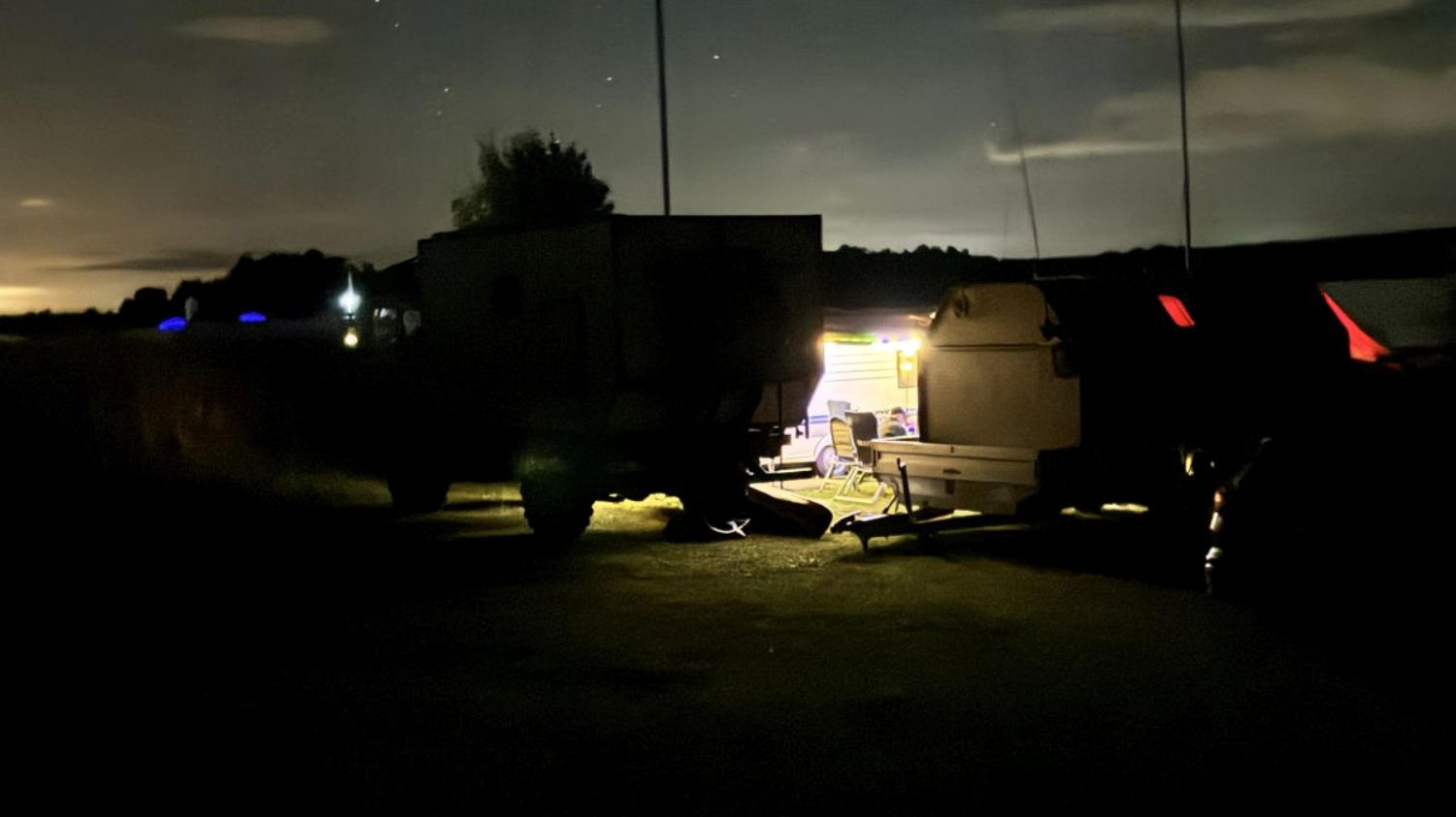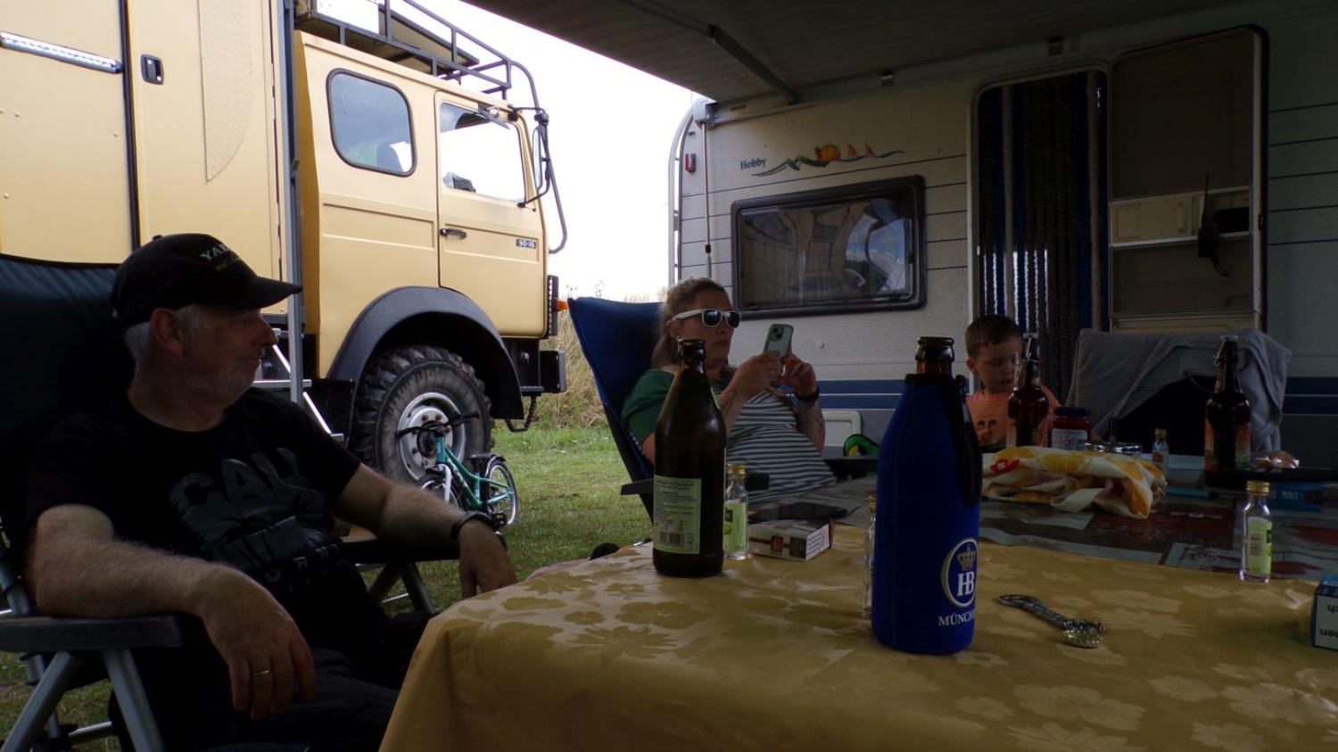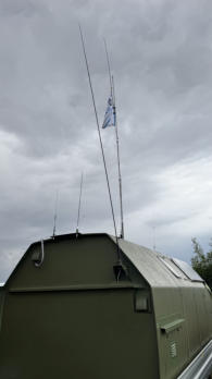 Auch ein wenig Antennen und Funktechnikwurde aufgebaut und das eine oder andereQSO gefahren. So wurde z.B. der NVA Mast welcherisoliert am Koffer vom WOMO angebracht istüber den MFJ Tuner angepasst. Ein QSO mit einerStation in Moskau auf 20m war kein Problem.