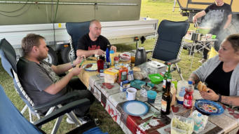 Sonnabend Mittag gab es lecker Nudeln mitselbst gemachter Soße von DO5SA und amAbend wurde reichlich gegrillt.
