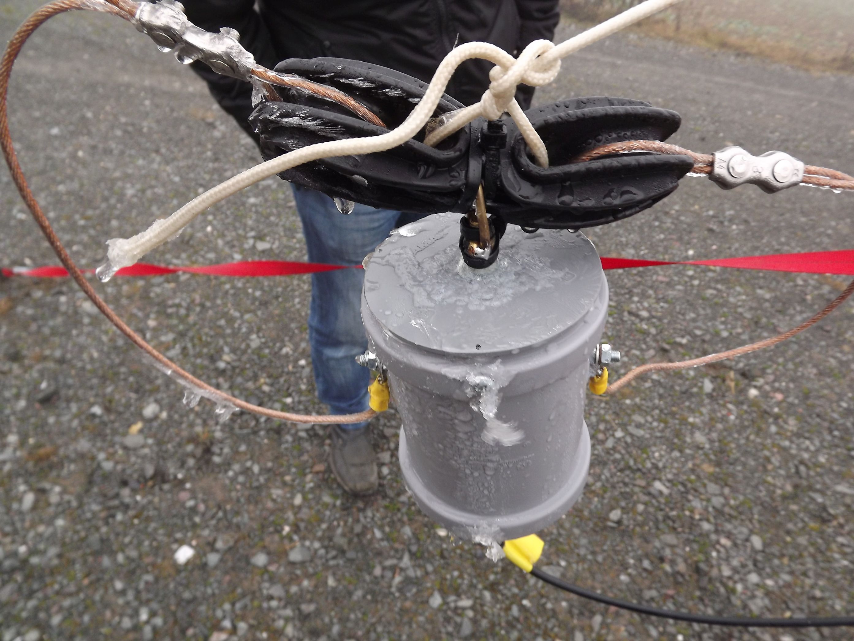 Durch eisige Temperaturen und Nebel fanden sich schnell Eiszapfen am Equipment und die Abspannseile froren fest.