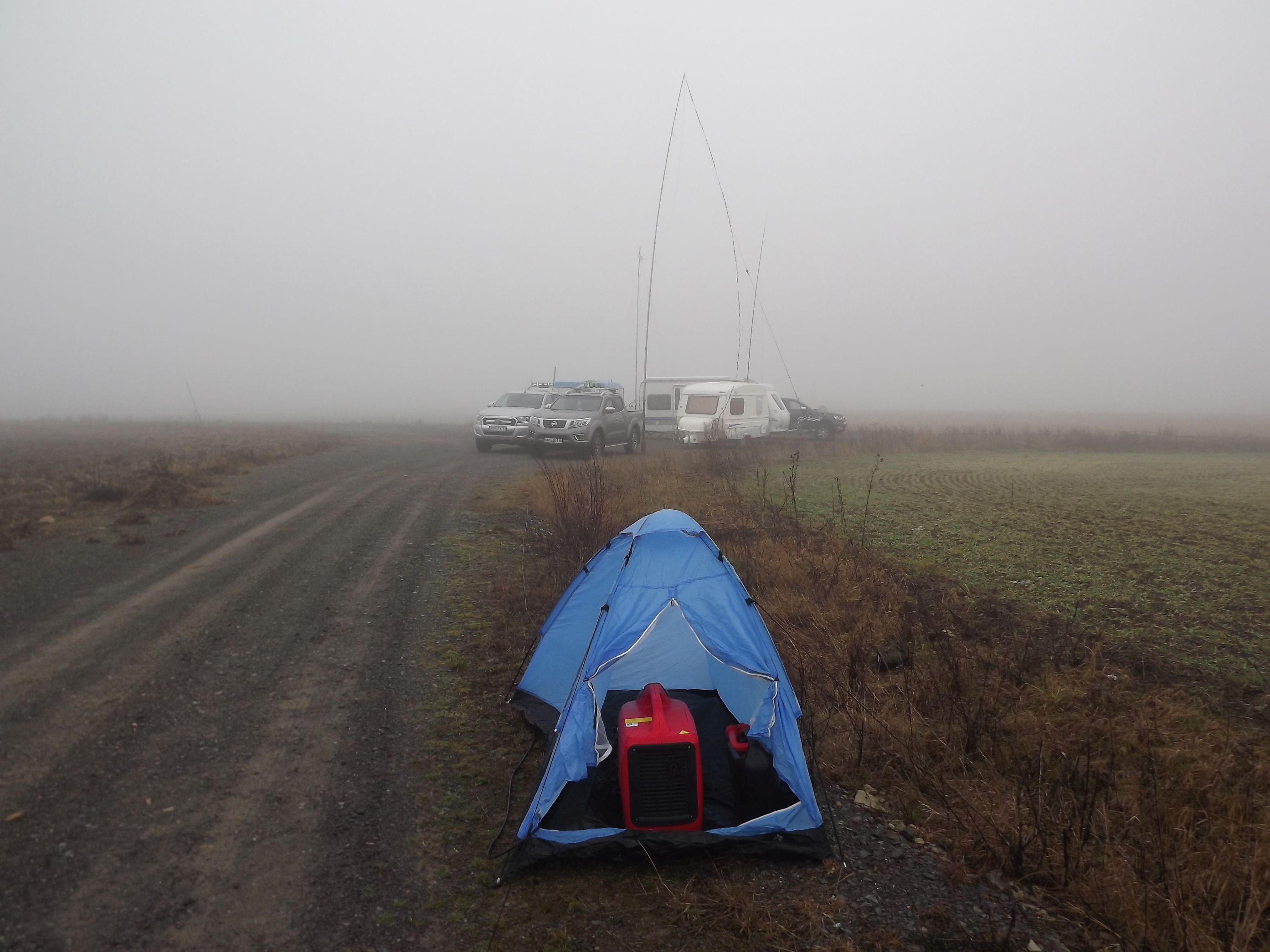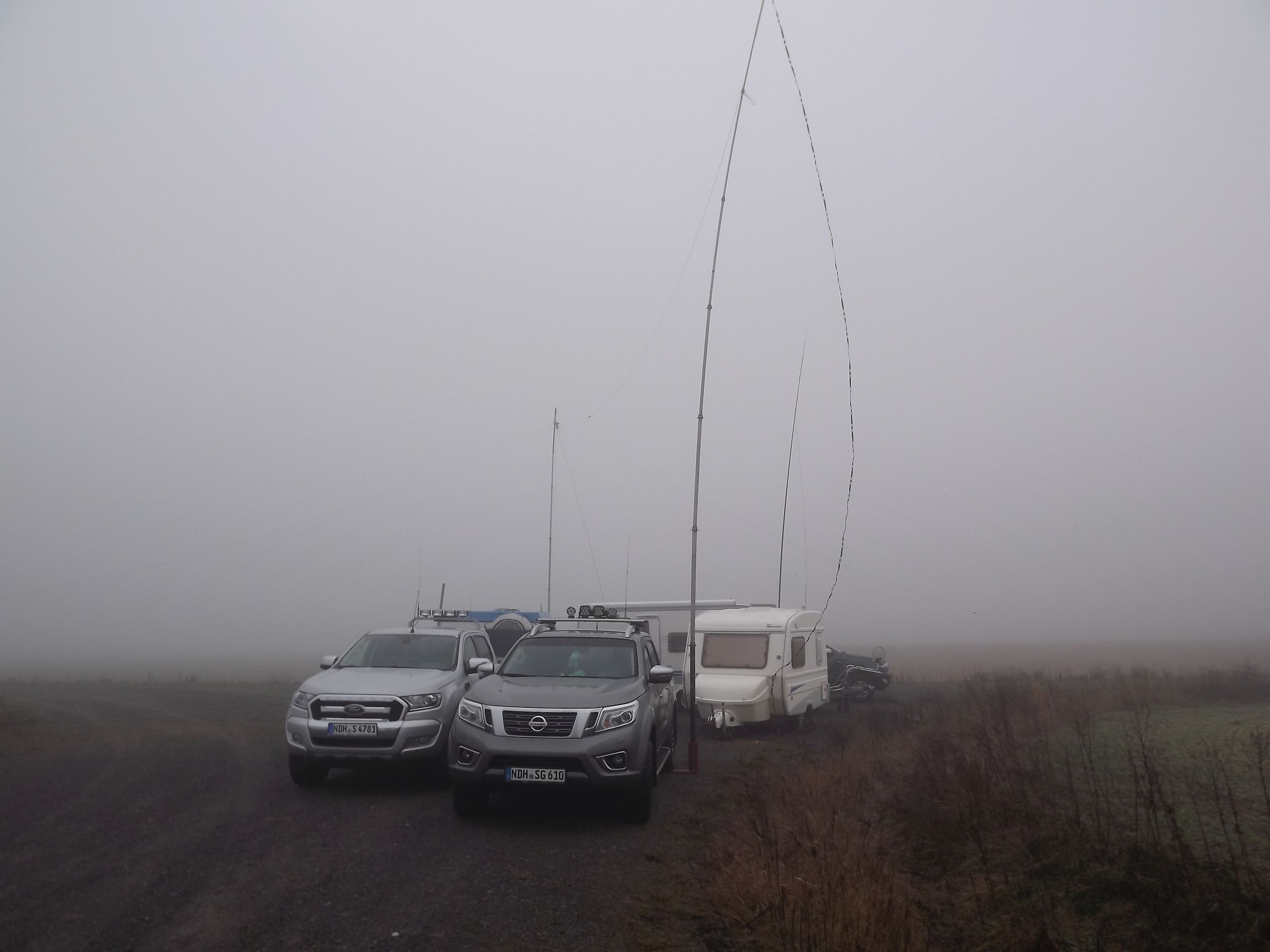 Der Nebel blieb beständig, die OMs auf dem Berg ließen sich davon aber nicht beeindrucken. Die Antennen auch nicht.