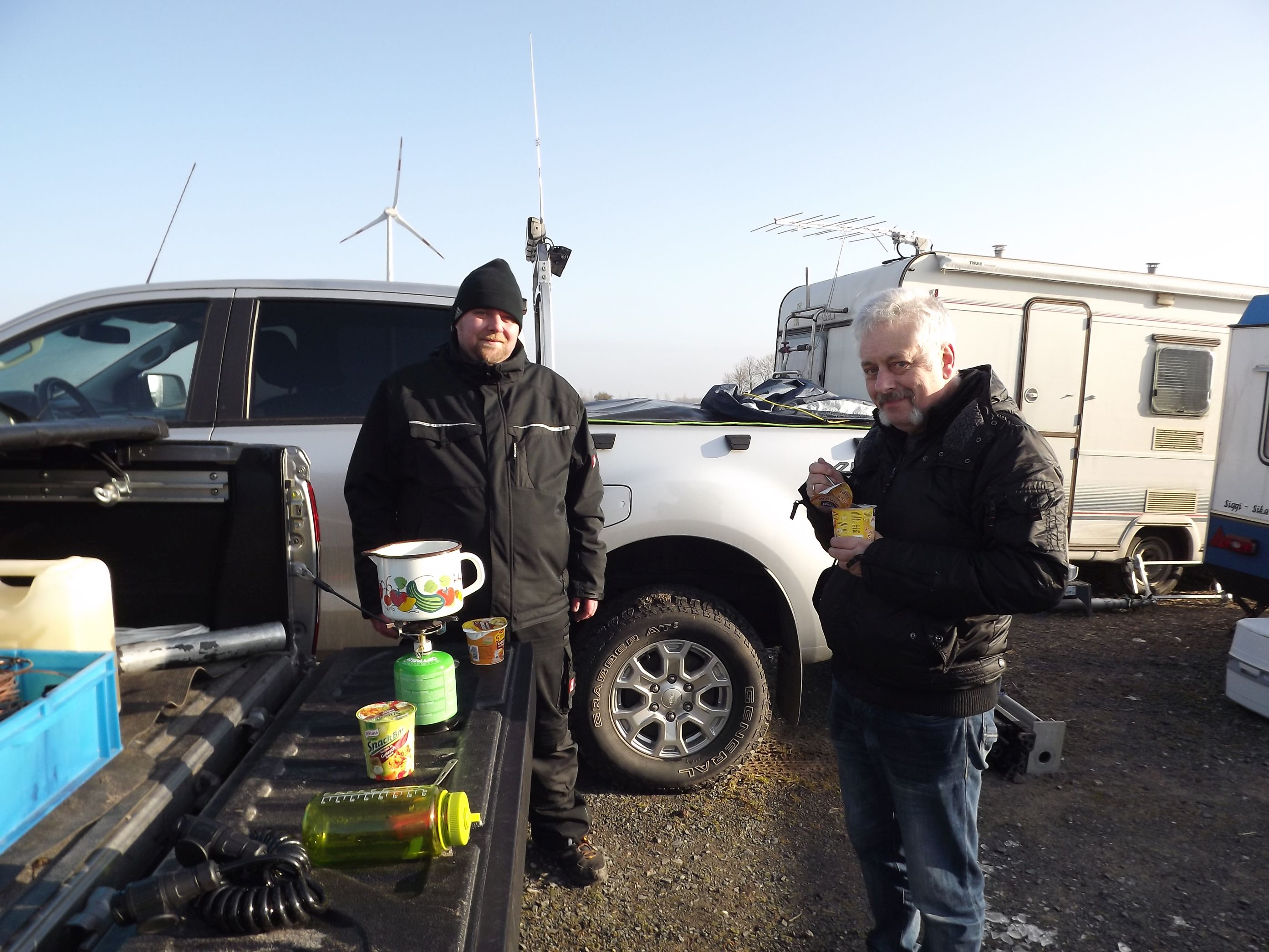 Nachmittagssnack. Links DO5ASG, rechts DL5ZK hatten "aufgetafelt" ... also auf ... auf der Hand.