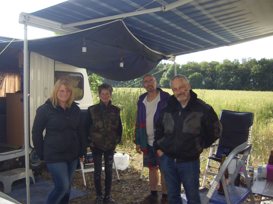 DO7YLM, Kerstin, DO5AMF und DL5ZK harrten in Kriegsbemalung unter dem Regenschutz aus.