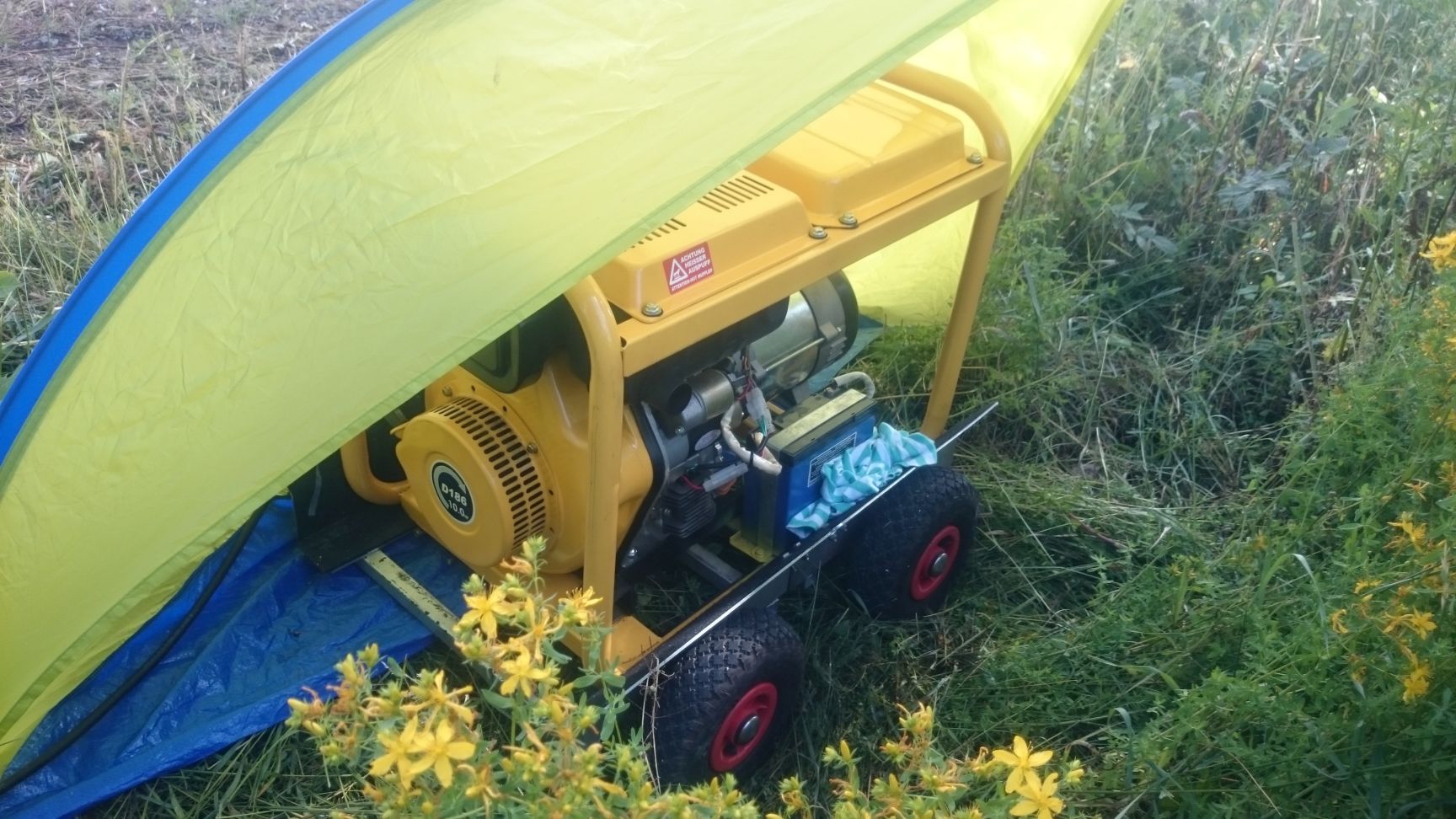 Aus diesem Grund wurde ein zweiter Generator benötigt. Die Aufgabe in der Aggregatemuschel wurde von einem 2,5KW Benziner bewältigt.