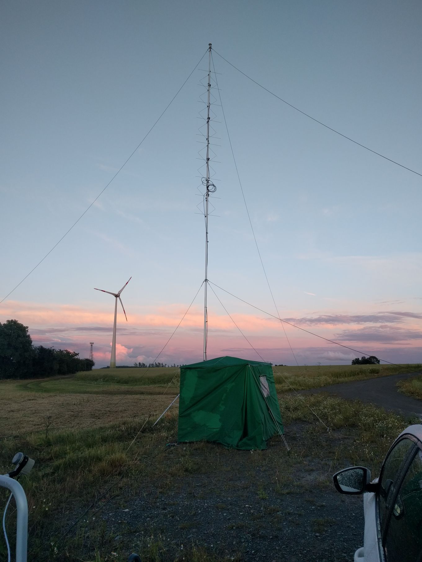 Gefunkt wurde im Zelt (made by DL5ZK), zum Glück komplett wasserdicht!