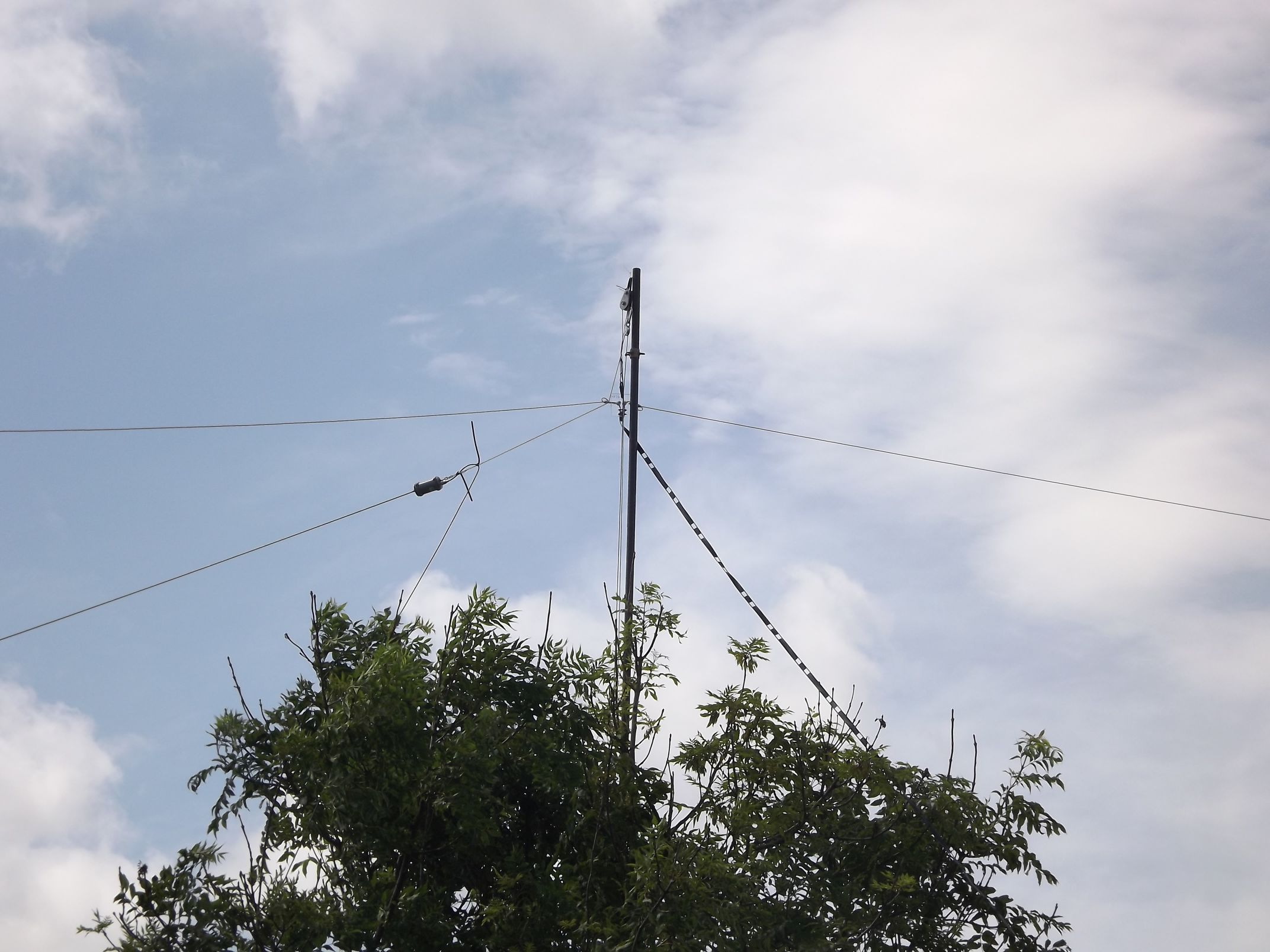 An diesem Mast terminieren zwei Langdrahtantennen.