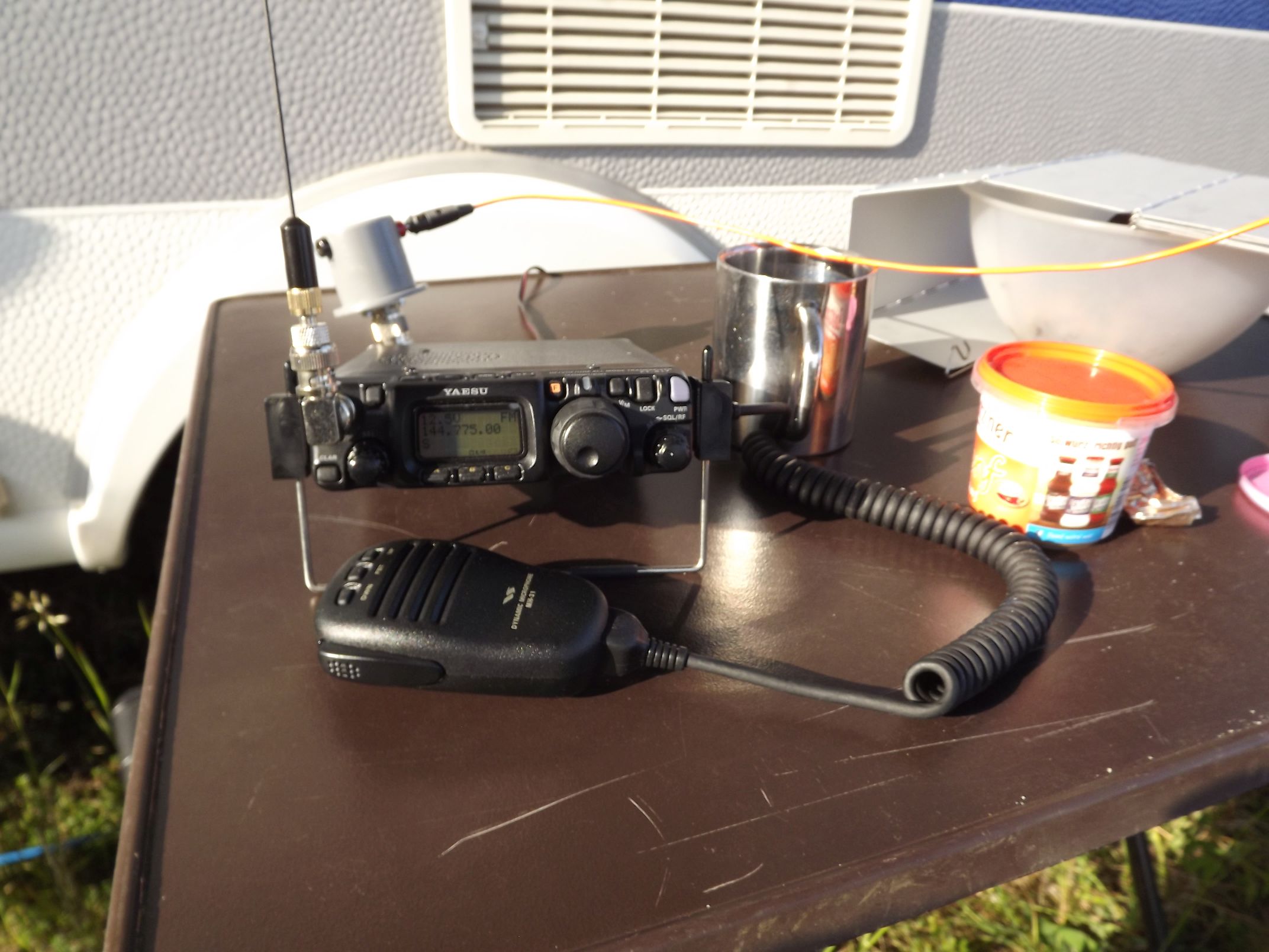 seinen FT-817 außen aufgestellt.