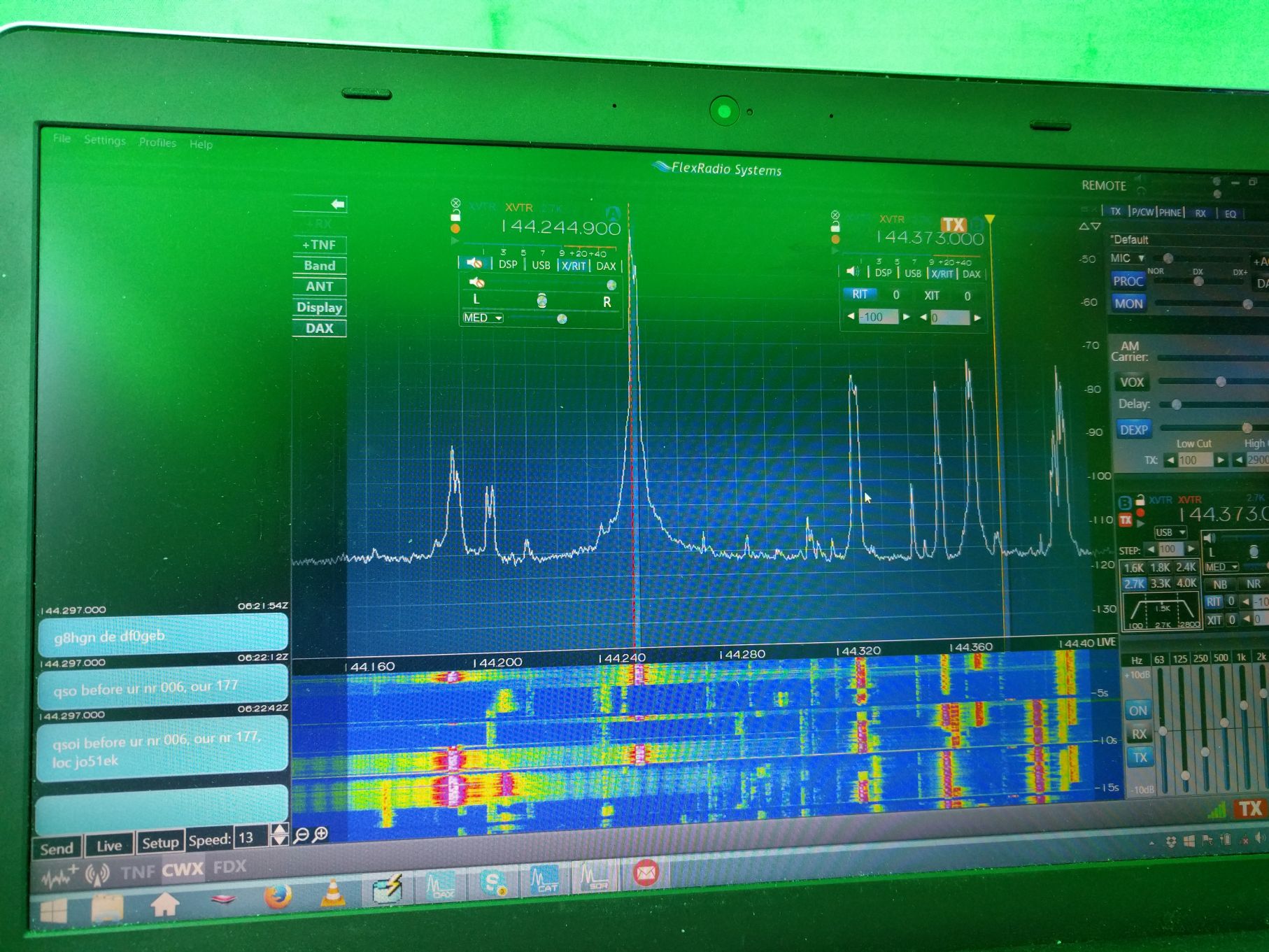 Schön zu sehen bei 144.244.900 MHz: Das sehr schmale Signal von DA0FF, bei denen wir uns für Ihre Signalaufbereitungsmaßnahmen