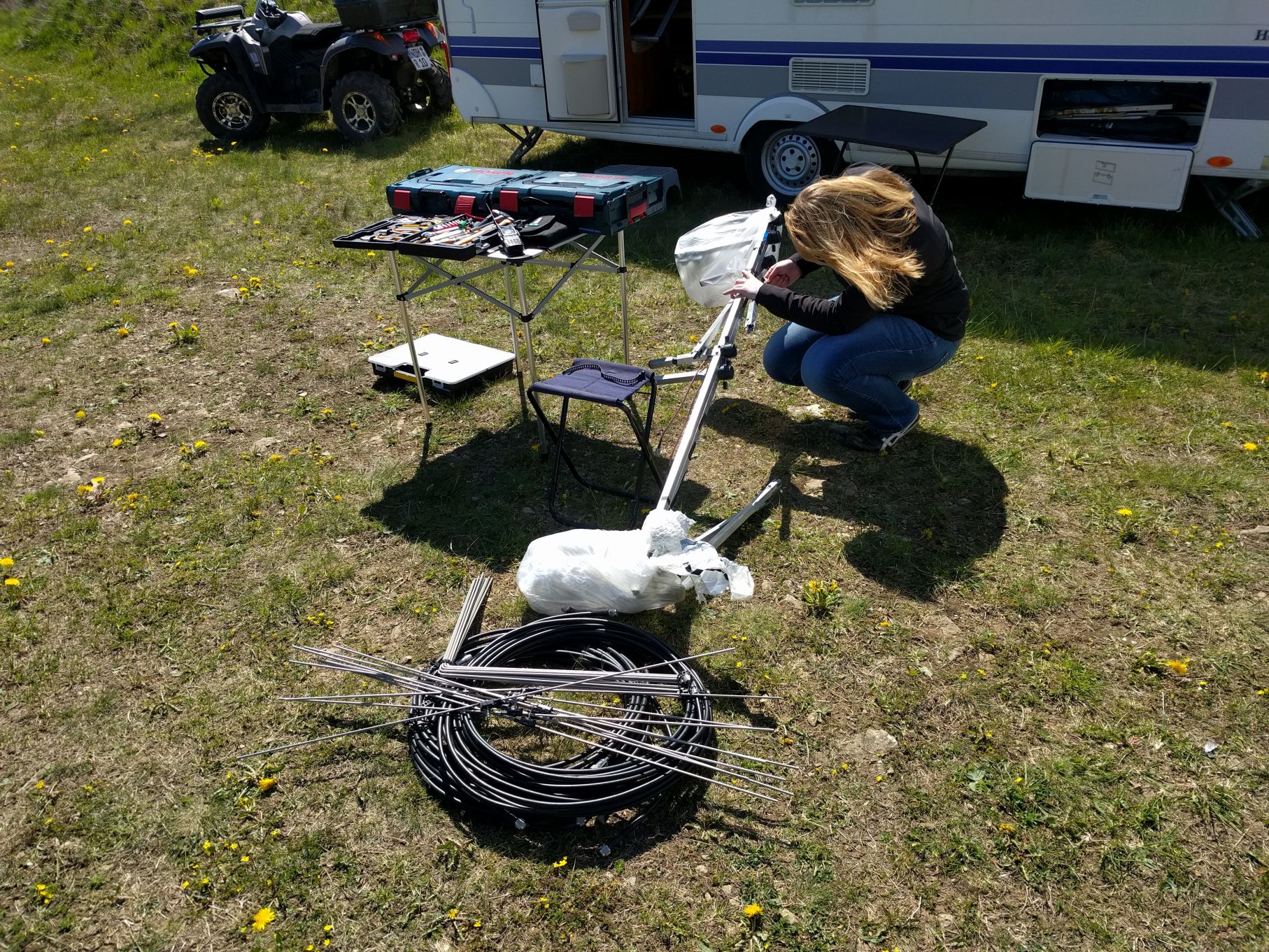 Aufbaus der 2m-Antennenanlage. Die Antennen werden immer gut verpackt, damit das Auto lange neu aussieht und bestehen aus 18