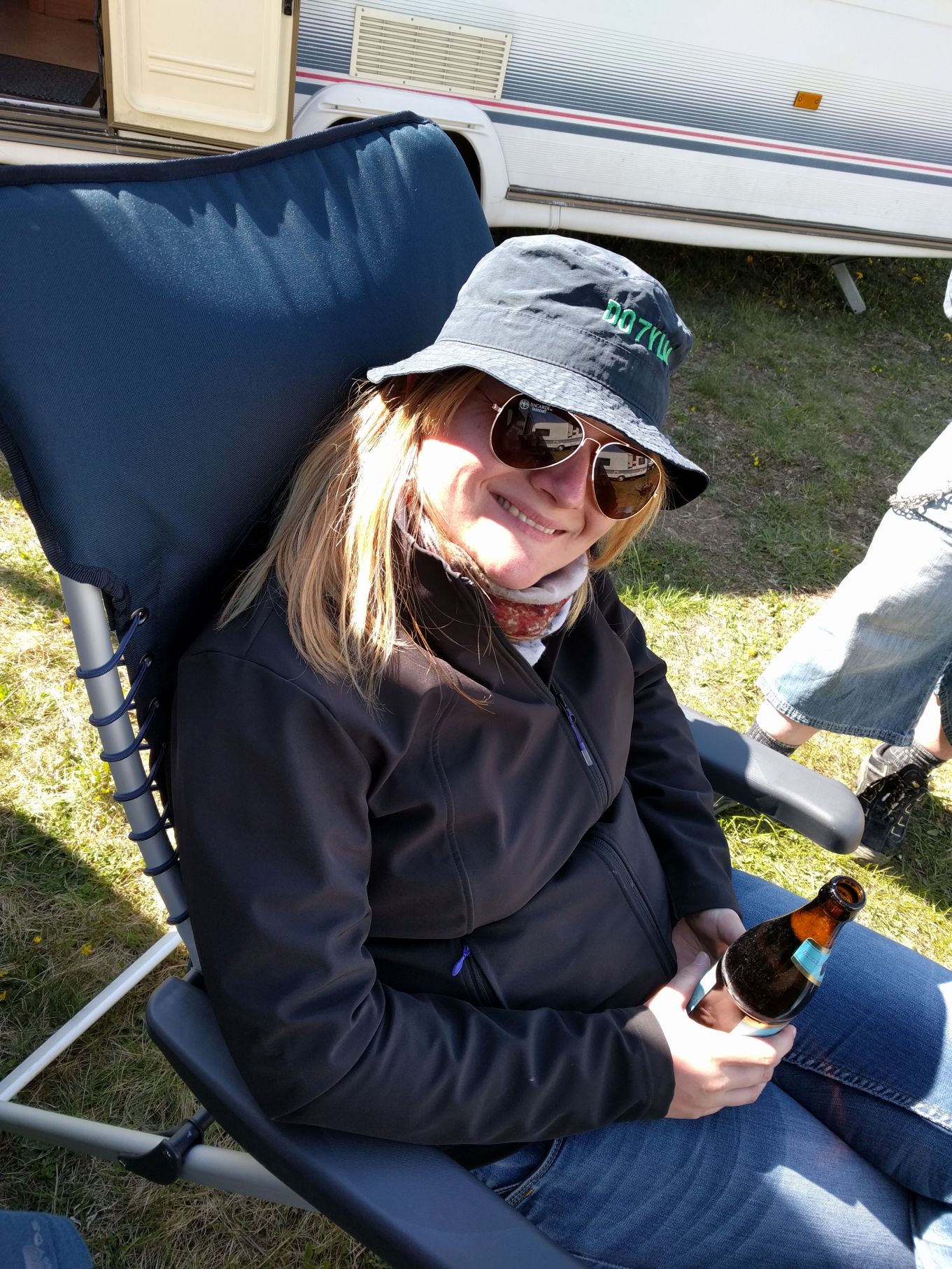 15:47 ist die Aufbauarbeit lange getan und DO7YLM ist von einem "Schwerkraftverstärker" [de DL5ASG] gefangen und trinkt