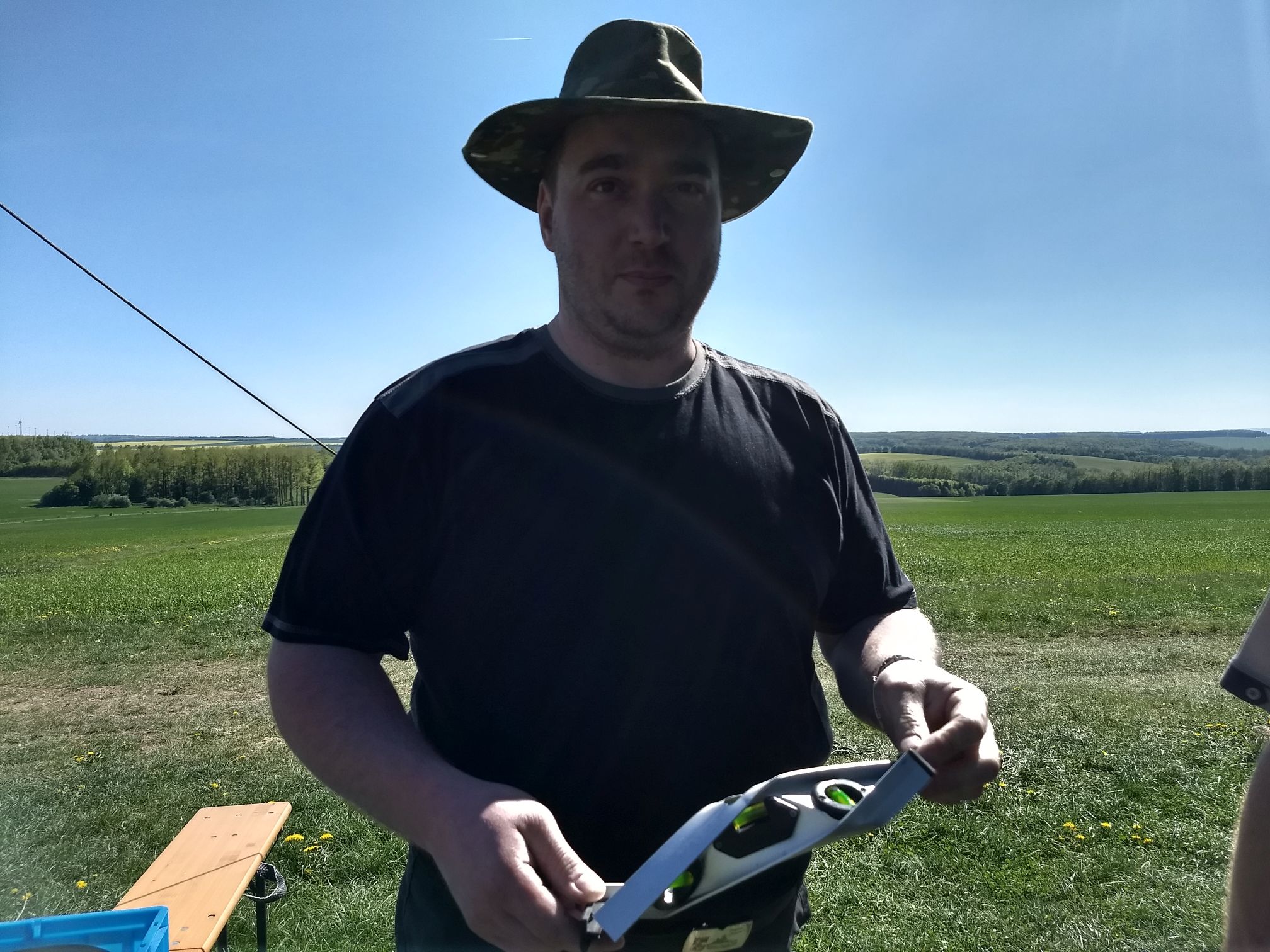 seine alte Wasserwaage zur Verfügung.