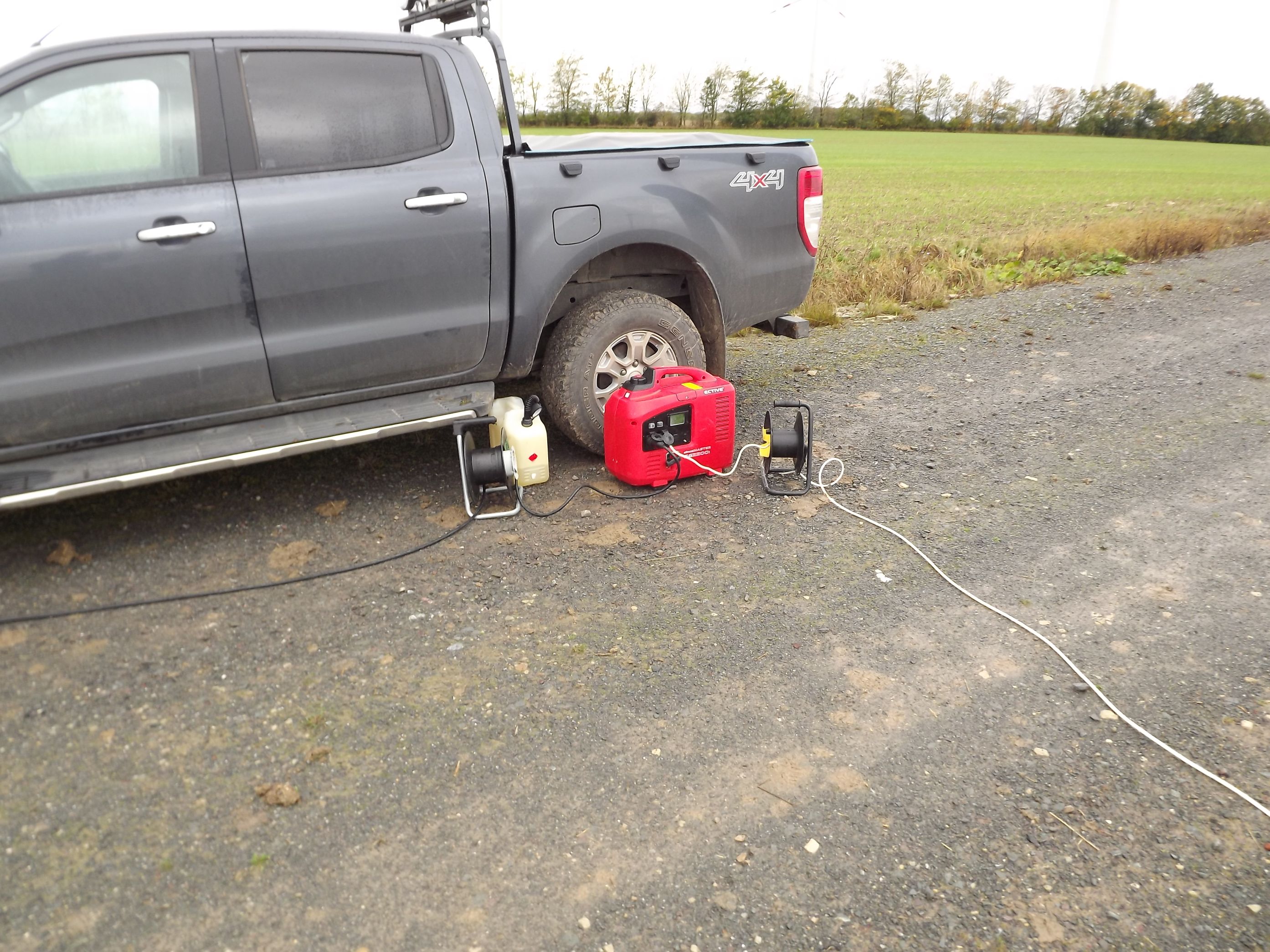 Der nächste Tag brach herein. Das Aggregat (Ective 2KW) versorgte alle Wohnwagen und deren Inhalt.