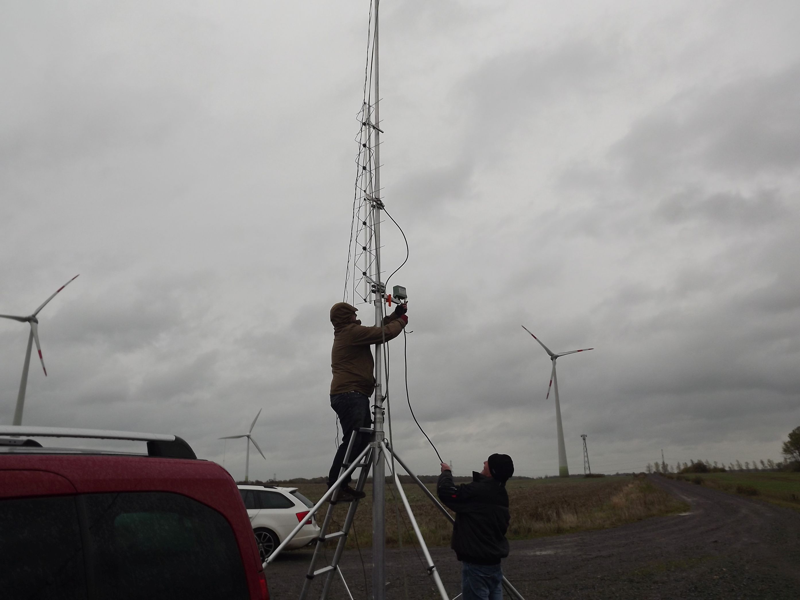DG0OVS übernahm die Feinjustierung der 70cm Antennen, DL5ZK spannt eine Wäscheleine.