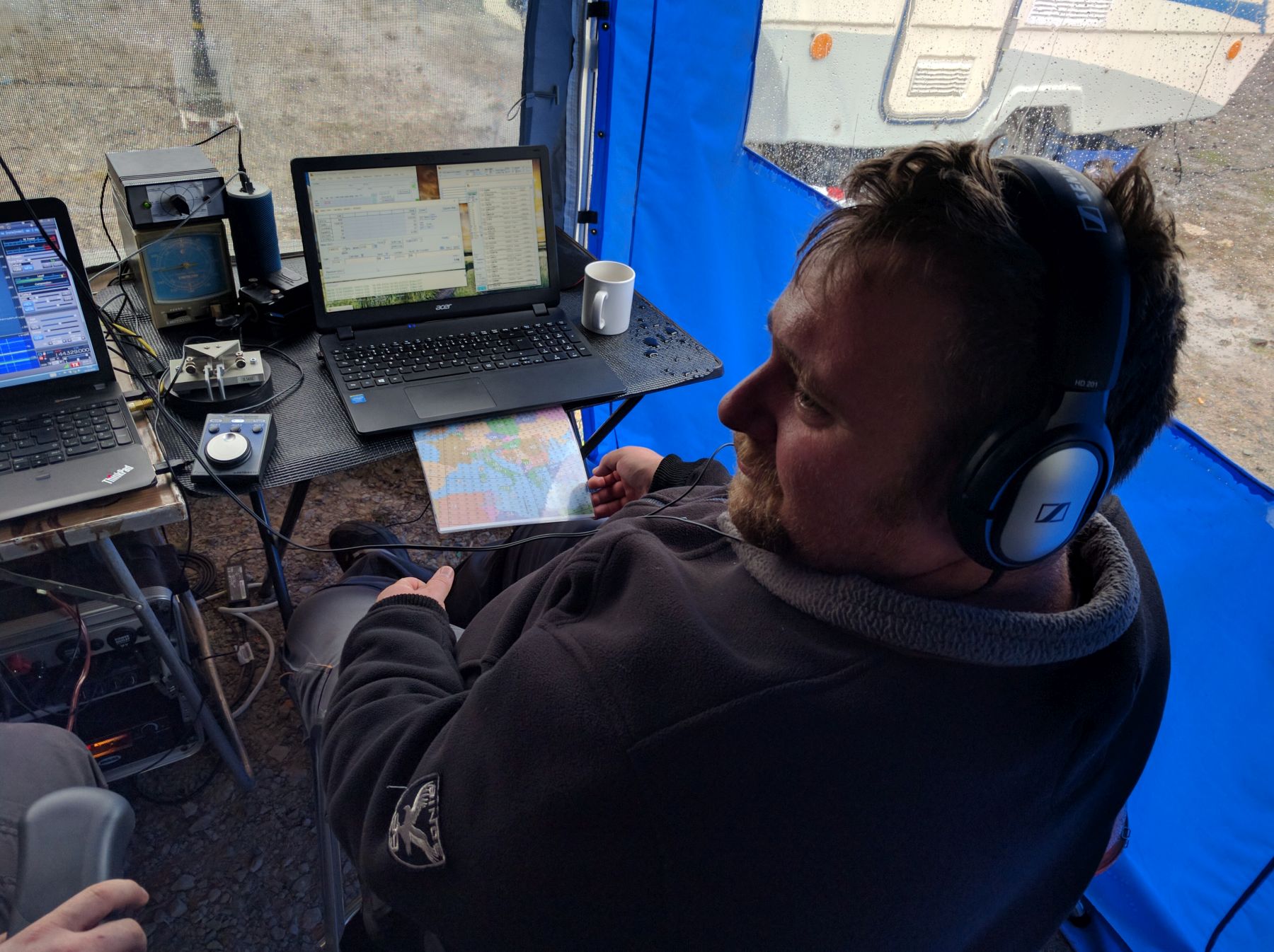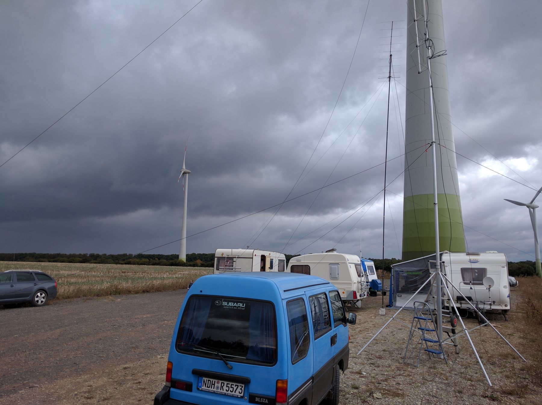 Hinter DL5ASG sieht man gut, welche Wolkenberge über uns hinweg zogen. Eine gute Dichtigkeitsprüfung für sämtliche eingesetzte Hardware...