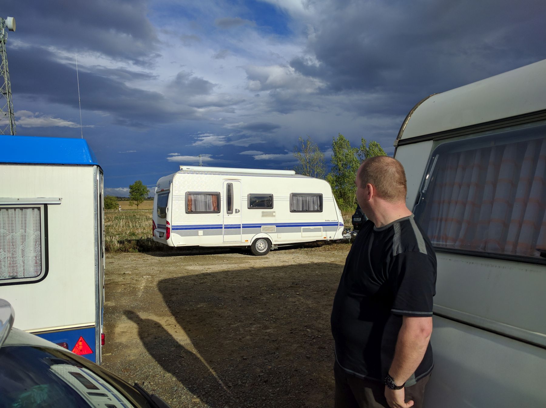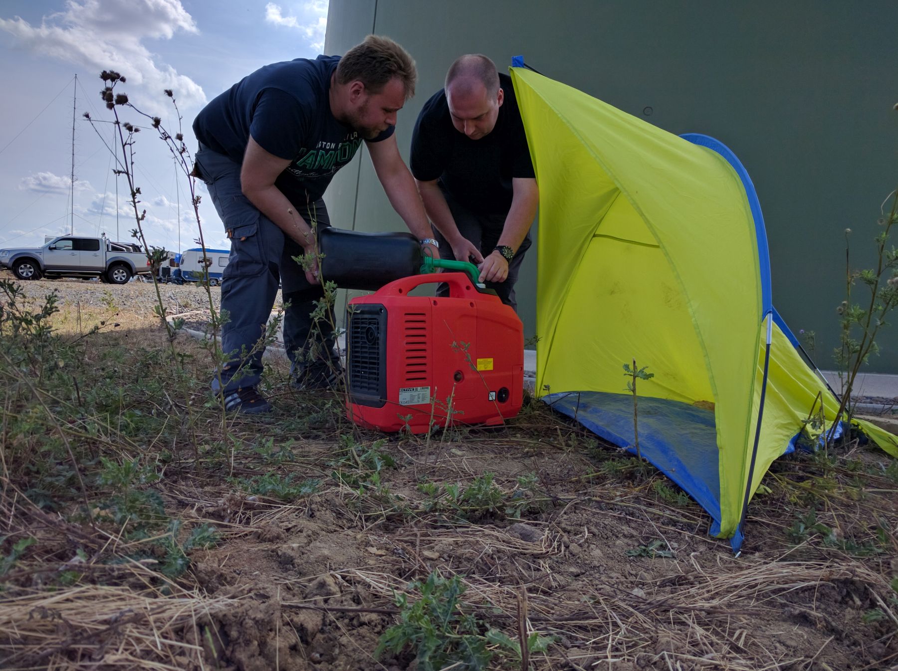 DL5ZK sichert nochmal die Häringe für das Gewitter, welches für einiges Spektakel auf VHF sorgte