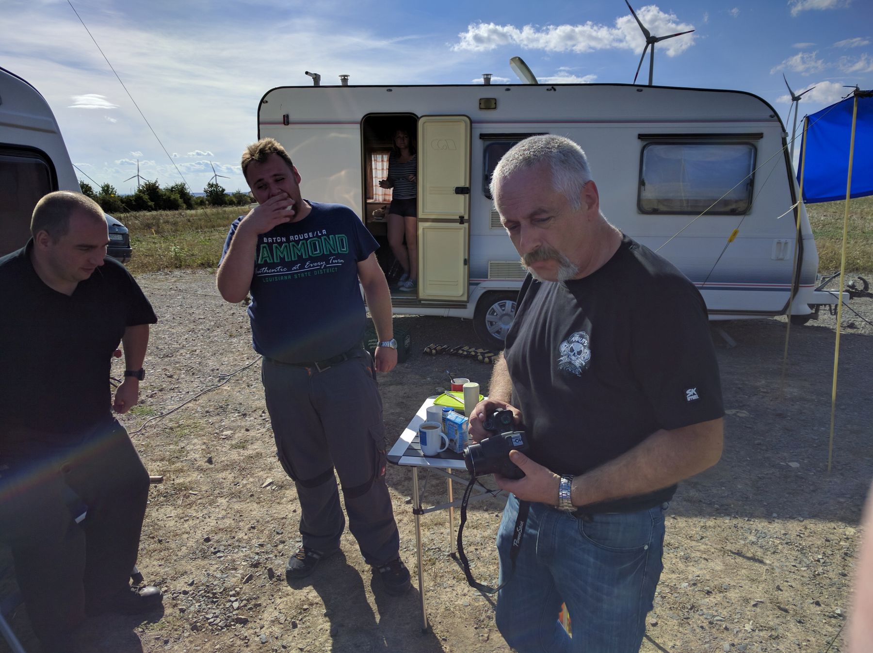 Die Wagenburg von innen. DL5ASG übernimmt demnächst die Station, während DL5ZK noch nach brauchbaren Motiven für seine neue Kamera sucht.