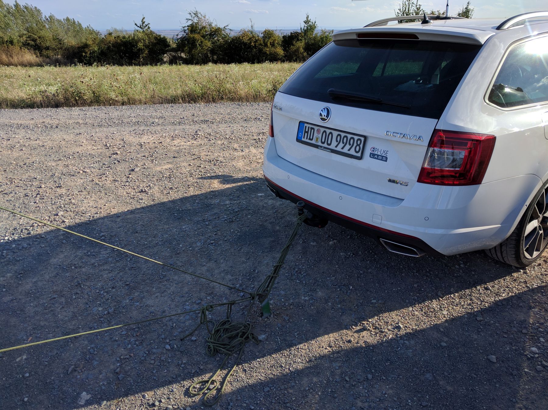 Boden etwas erfinderisch bei der zusätzlichen Absicherung der Mastabspannung sein. Das Auto stand günstig...
