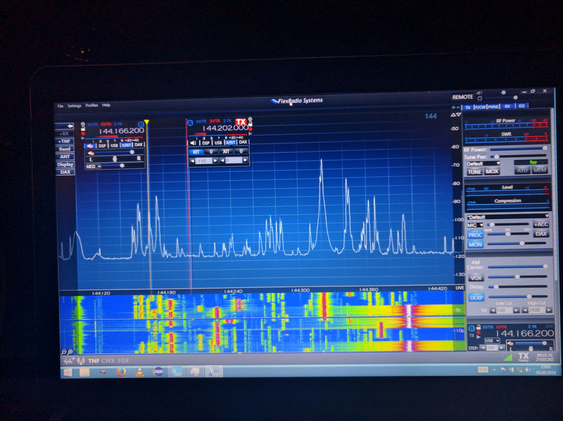 Links bei 144.240: sehr starkes, extrem schmales Signal von DA0FF, die nach einst eingegangenen Hinweisen auf die Signalqualität merkbar nachbesserten.