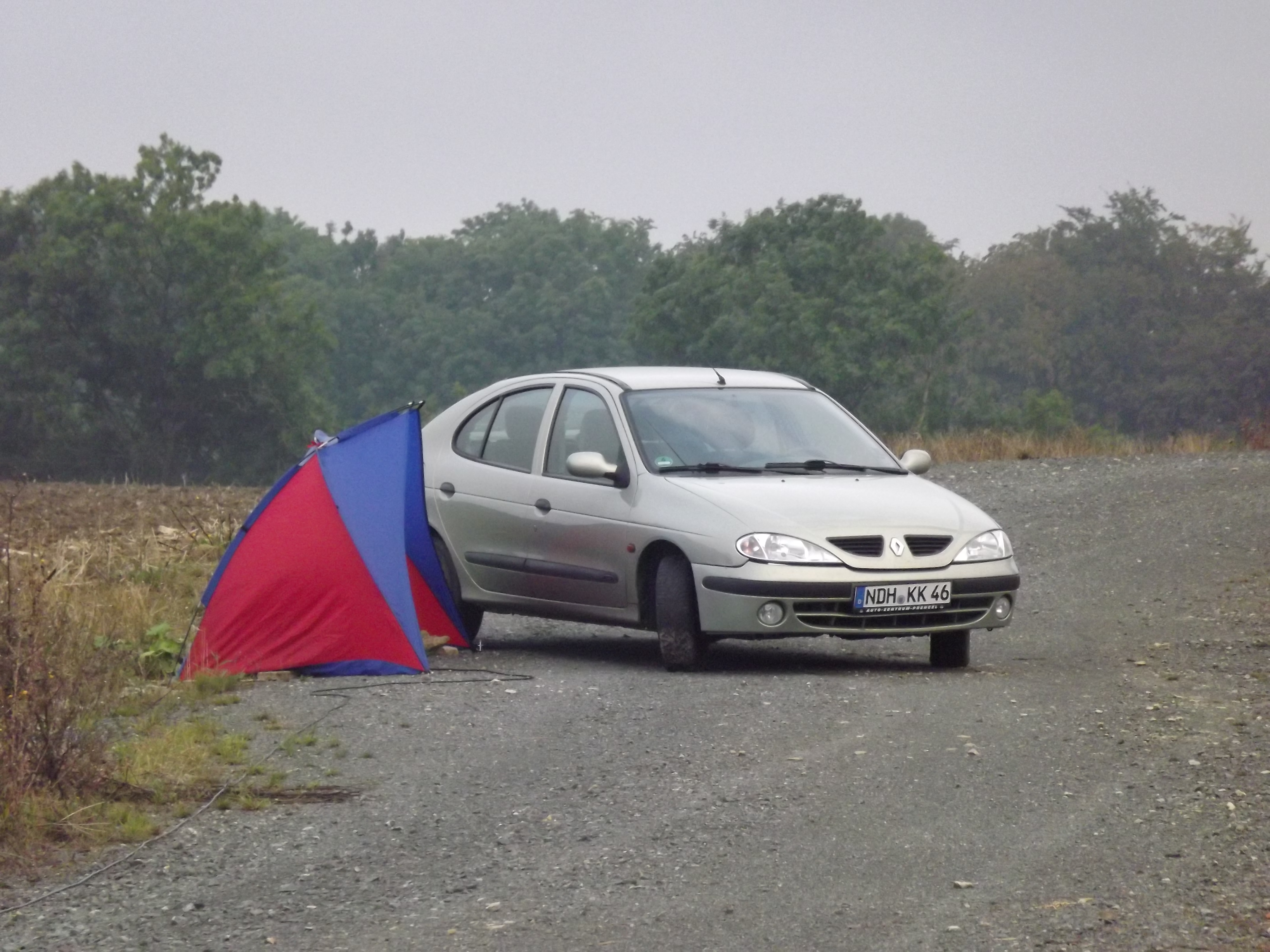 Aus der Aggregatemuschel kamen sowohl Strom, als auch Krach. Der Renault diente als Windfang, falls der Wind dreht.